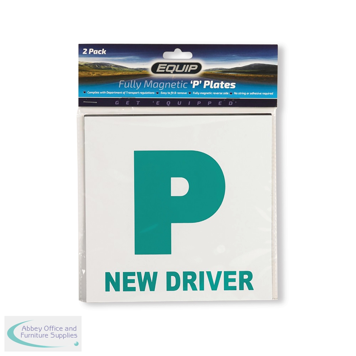 Get Equipped with Equip's magnetic P plates, the ideal accessory for newly qualified drivers. With a convenient magnetic backing, these plates easily attach to the front bonnet and rear of any vehicle, leaving no marks or residue when removed. Ensure the magnetic plates are applied to smooth, flat metal surfaces on the front bonnet and rear of the vehicle. Before applying, clean and dry the vehicle surface thoroughly to prevent the plates from slipping off at higher speeds or on the motorway. To apply, place the magnetic plate horizontally on the panel and start by placing one corner against the metal surface and let the plate securely attach as it pulls itself onto the surface. Ensure the plate is flat and free of air pockets for the best grip. If repositioning is necessary, gently peel off from the corner and reapply in the desired location.