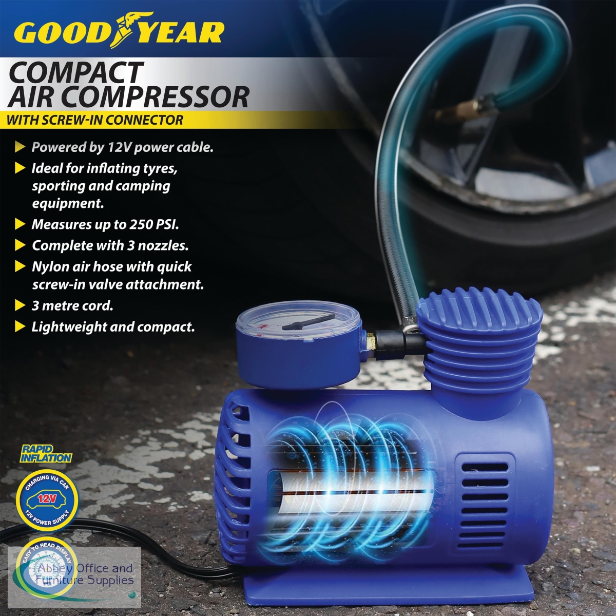 GDY44929 - Goodyear Pro Compact Mini Air Compressor 3m Blue 900009
