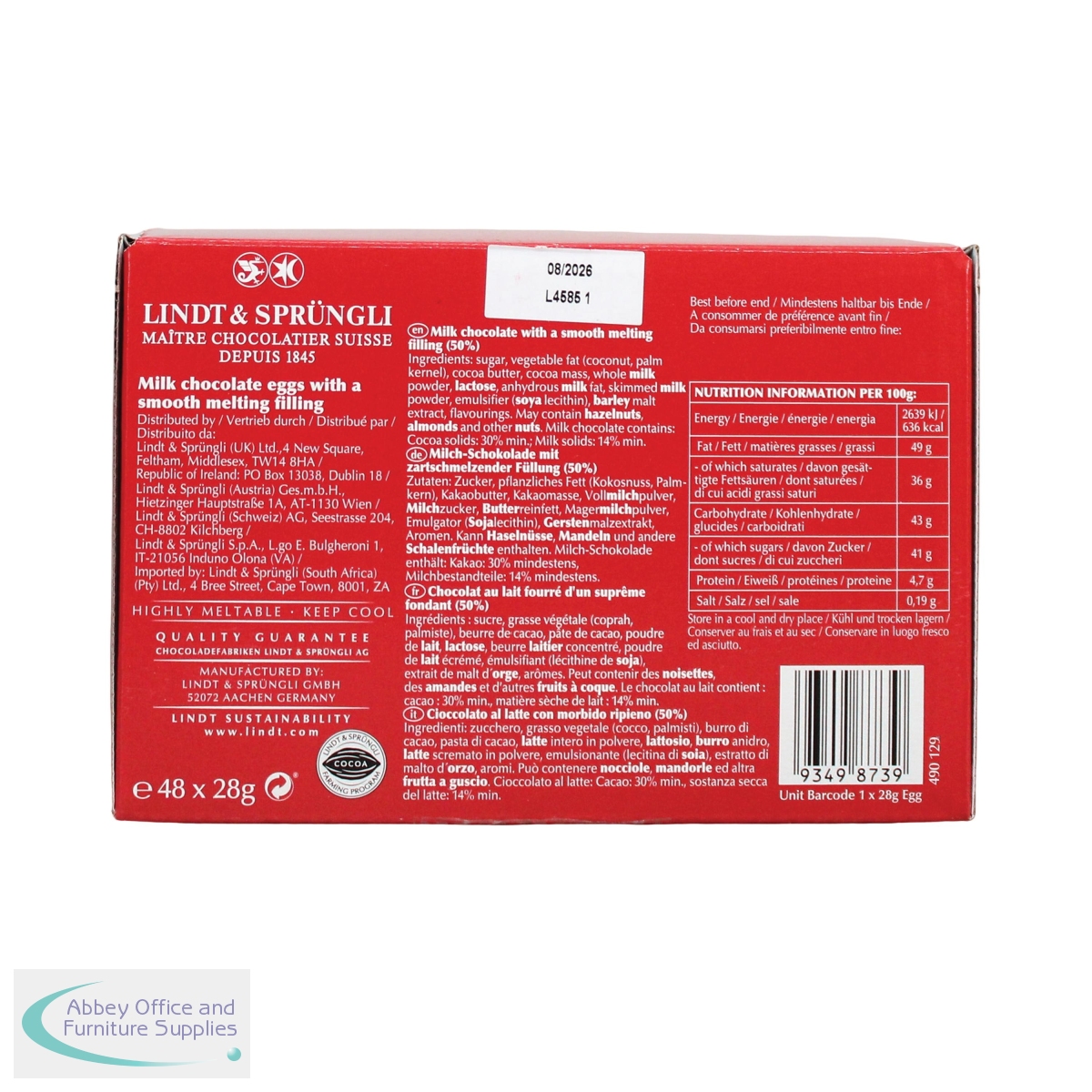 AU67988 - Lindt Lindor Milk Chocolate Egg 28g (Pack of 48) FOLIN040