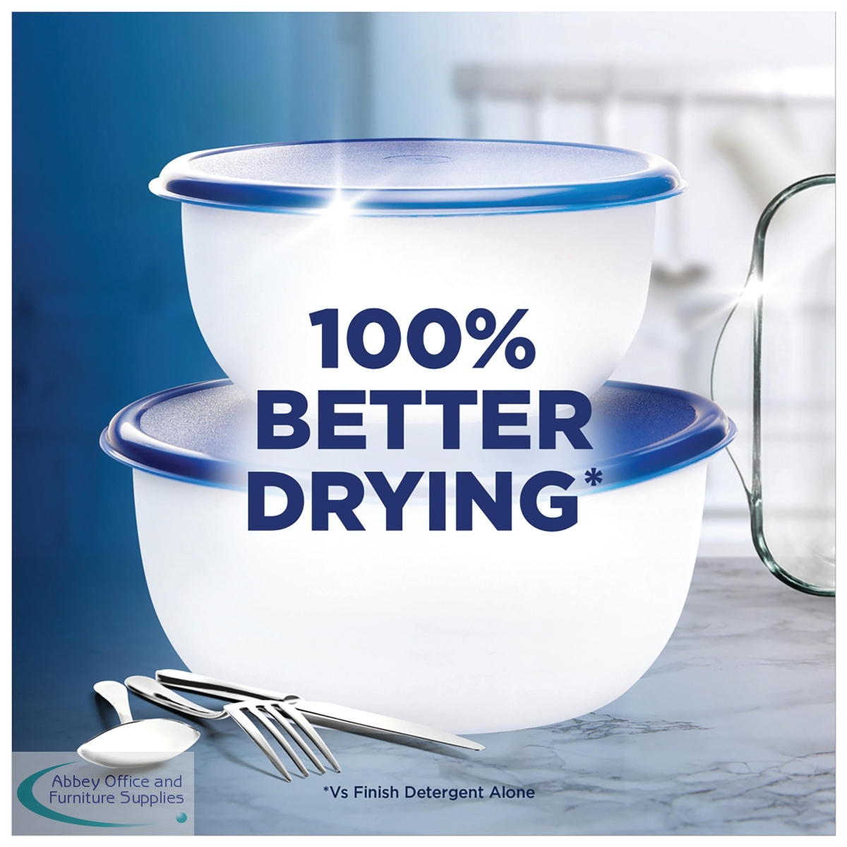 Finish Rinse Aid is a quick drying formula actively dries dishes and glasses for a brilliant shine. Offering film protection to prevent stains, it fights water spots and speeds up drying time by dispersing water droplets, leaving dishes streak-free and ready to use again.