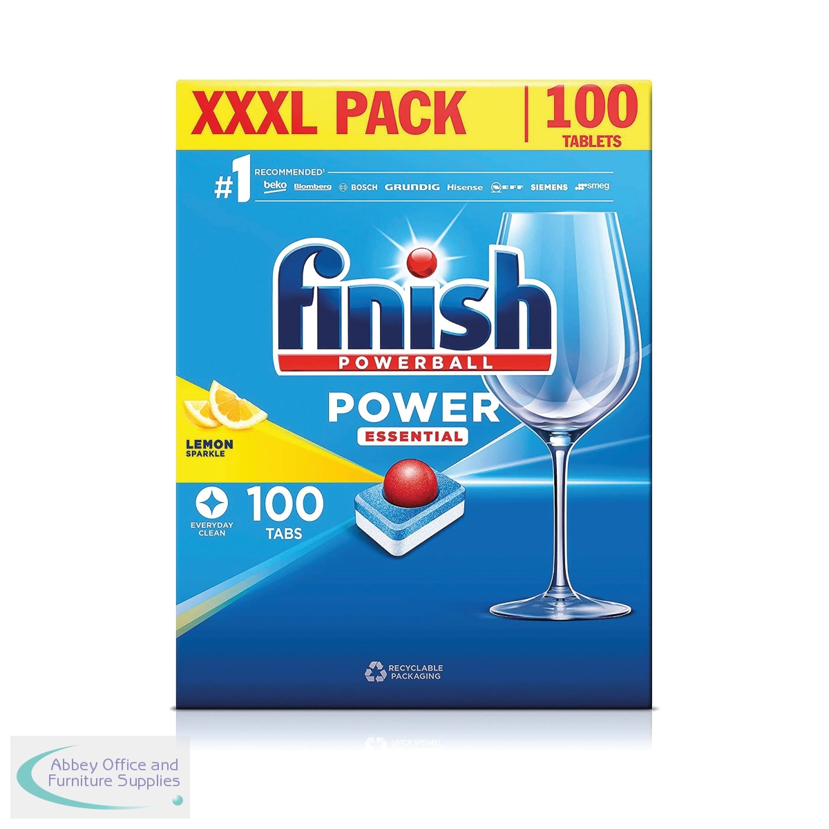 The Finish Power Essential dishwasher tablets provide clean and shining dishes first time, every time. The powerball supercharges the tablets to remove food and grease from dishes for everyday clean results. Supplied in a case of 4 packs, each pack contains 100 dishwasher tablets that are lemon scented.
