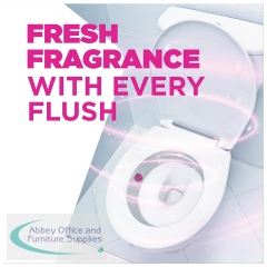 The Harpic Hygienic Fresh Sticker Toilet Block provides up to 2 weeks of freshness and a boost of scent with every flush. There will be no germy cage in your toilet because after the product is finished, the Harpic Hygienic Fresh Sticker dissolves. It is easy to use, just apply on a clean, wet surface just under the rim - push onto the bowl and you're ready to go in 3 seconds. With no plastic applicator, there is 99% less plastic compared with Harpic rim blocks. Floral freshness has never been easier as this item sticks discreetly to the toilet bowl.
