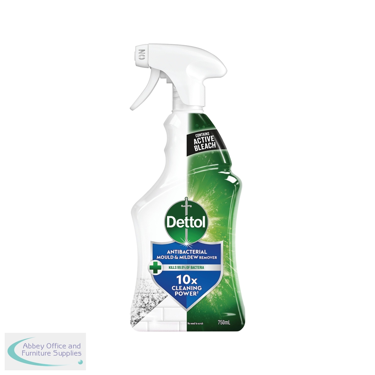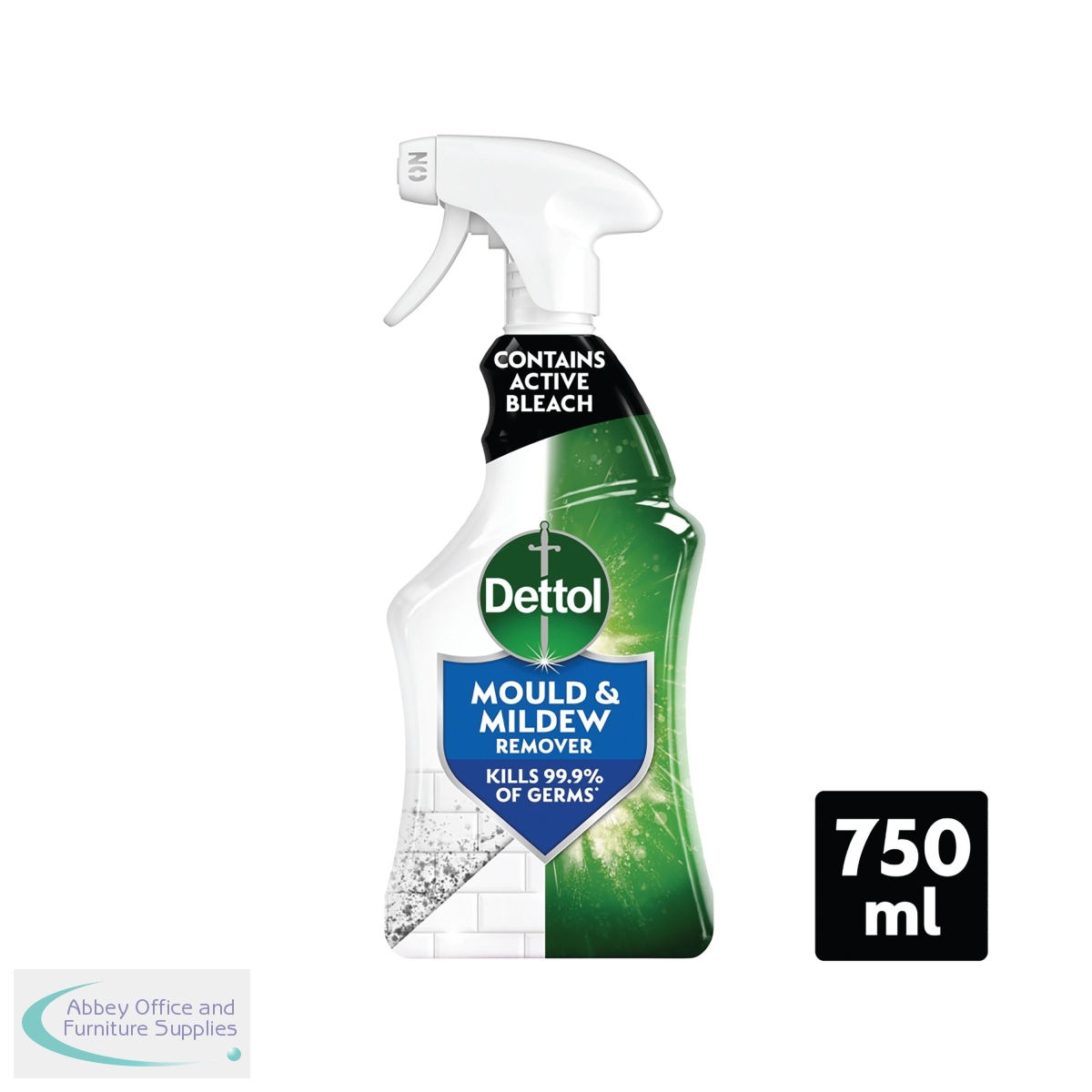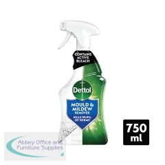 Dettol mould and mildew remover is suitable for use on ceramic tiles, grout, chrome and stainless steel, Formica and plastics, ceramic basins and toilets, acrylic bathtubs/showers and around window frames. This formula contains active bleach. For use, turn the nozzle to the 'on' position, keep the bottle upright and spray from 20-25cm away. Leave the solution to work for up to 5 minutes (maximum) and wipe clean and rinse thoroughly. Kills MRSA, E-coli, Salmonella, Rotavirus and H1N1 virus. Supplied in a 750ml trigger spray bottle. Pack of 6.