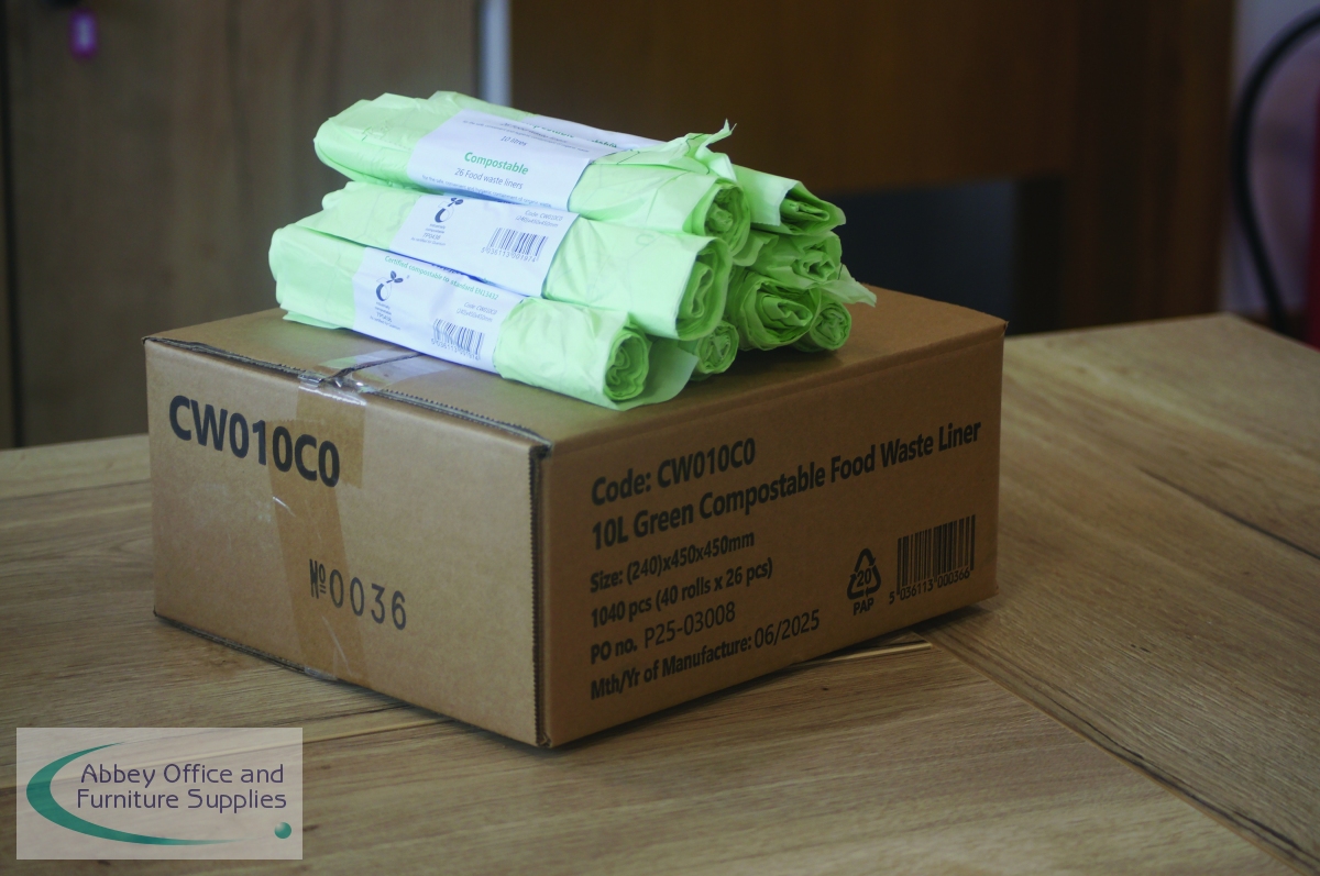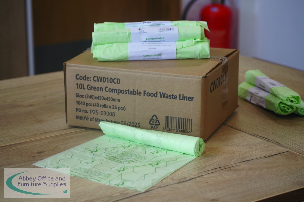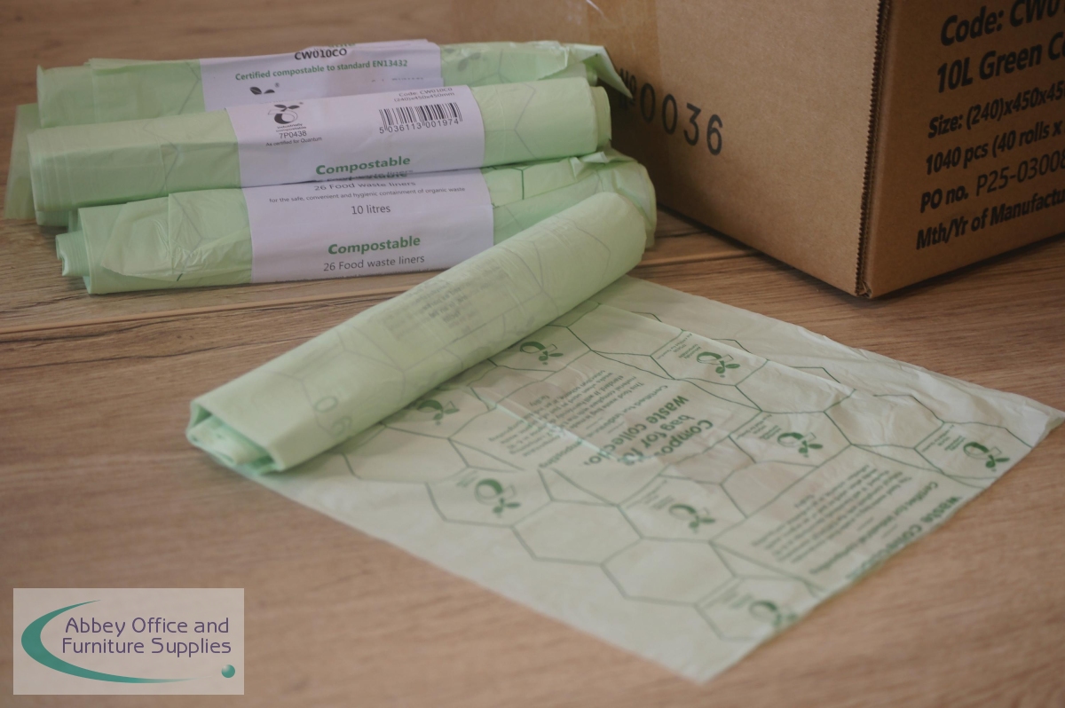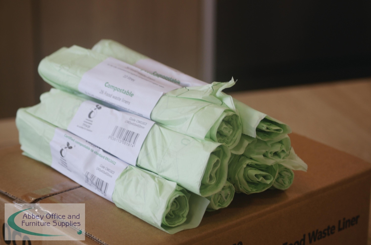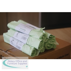 Good waste management and recycling methods help to support a cleaner, greener planet, preventing unnecessary items being sent to landfill where they struggle to decay. Almost all food waste is recyclable and when it is recycled, it has the ability to breakdown and over time produce compost. These 10 litre capacity, compostable, food waste bin liners, in pale green, visually signal compostability, helping to distinguish them from conventional plastic liners. This pack contains 40 rolls of 26 liners (1,040 liners in total).