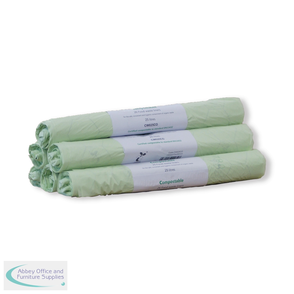 CRO00198 - Compostable Food Waste Liners 25L 26x20 Rolls (Pack of 520) CW025C0