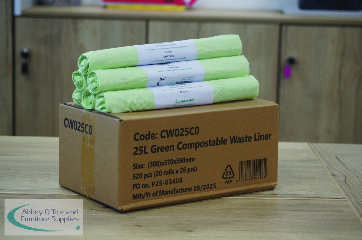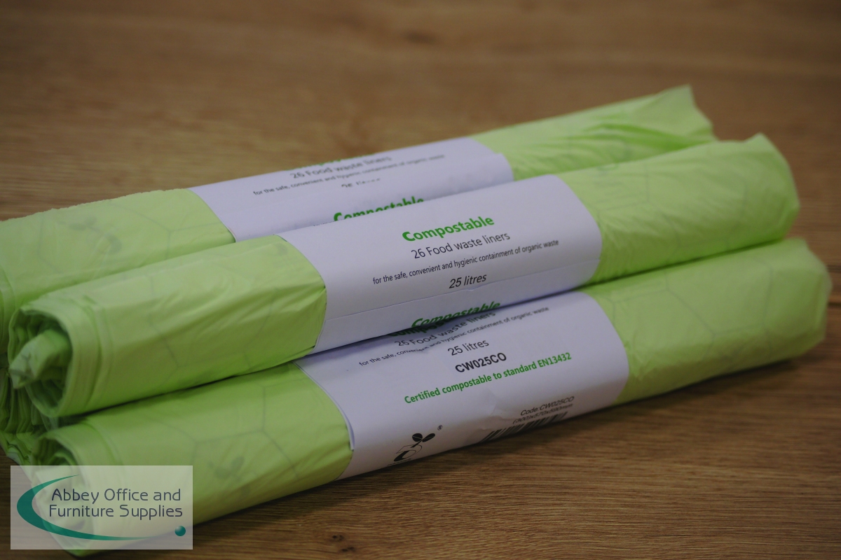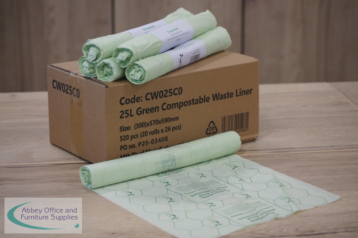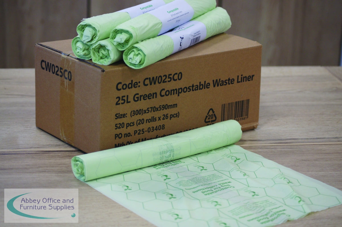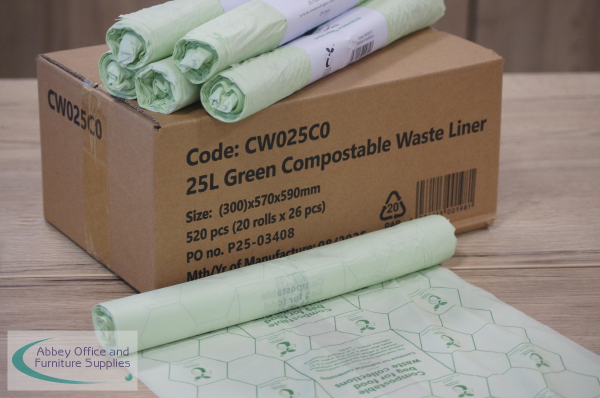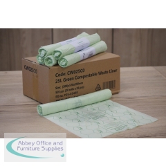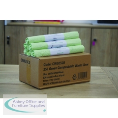 Good waste management and recycling methods help to support a cleaner, greener planet, preventing unnecessary items being sent to landfill where they struggle to decay. Almost all food waste is recyclable and when it is recycled, it has the ability to breakdown and over time produce compost. These 25 litre capacity, compostable, food waste bin liners, in pale green, visually signal compostability, helping to distinguish them from conventional plastic liners. This pack contains 20 rolls of 26 liners (520 liners in total).