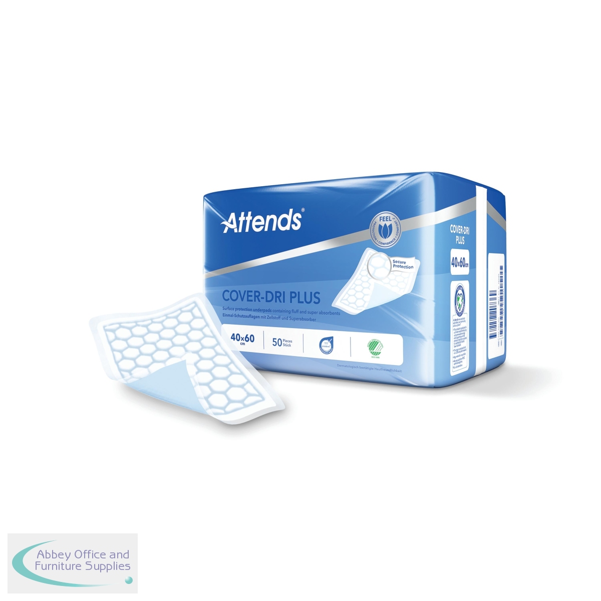 ATN20390 - Attends Cover-Dri Bed Pad 400x600mm Plus x6 (Pack of 50) 36683