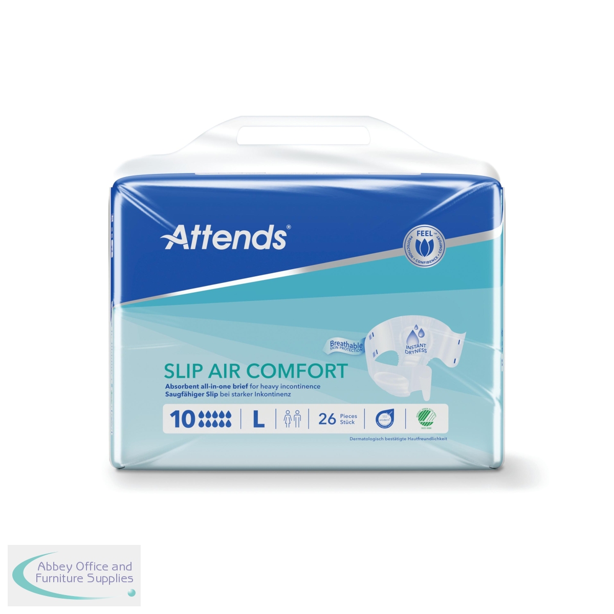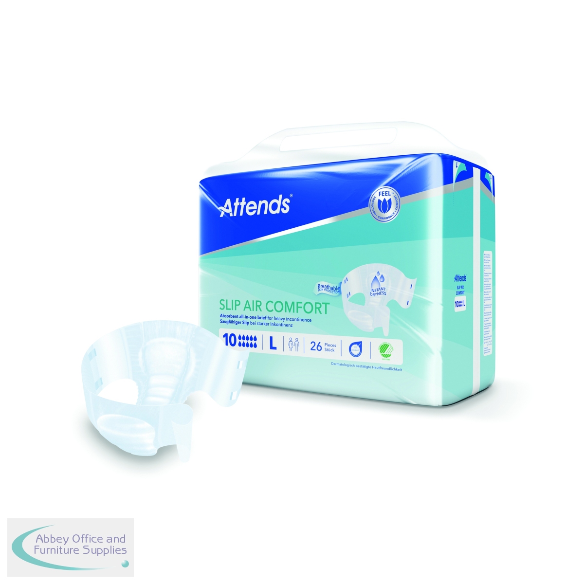 ATN21378 - Attends Slip Air Comfort Nappies Size 10L x2 (Pack of 26) 37790