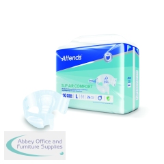These size Large Attends Slip Air Comfort nappies are designed to manage heavy urinary and/or faecal incontinence. The resealable fixation system helps to secure the product in place and reduce the risk of leakage. Designed for men and women with little to no bladder and/or bowel control. Suitable for nighttime incontinence and bedwetting; or as an alternative for children who have outgrown toddler nappies. This pack contains 2 packs of 26 nappies (52 in total).