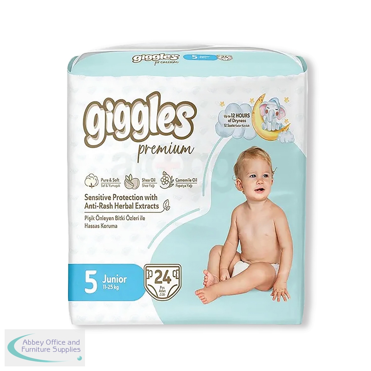 Giggles Premium Twin Nappies - Junior are designed for bigger babies and toddlers, offering comfort and reliable protection. Ultra‑soft materials, breathable layers and a strong absorbent core help keep skin dry and comfortable during extended wear, while anti‑rash herbal extracts and leak‑proof barriers support skin comfort and protection. Supplied in a pack of 24.