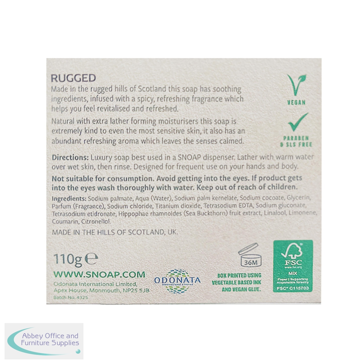 The Snoap refill for the Snoap dispensers is an environmentally friendly alternative to liquid soap. Free from plastic, the refill is in block soap form and packaged in a cardboard box. Made in the rugged hills of Scotland, this soap has soothing ingredients, infused with a spicy, refreshing fragrance which helps hands and body feel revitalised and refreshed.
