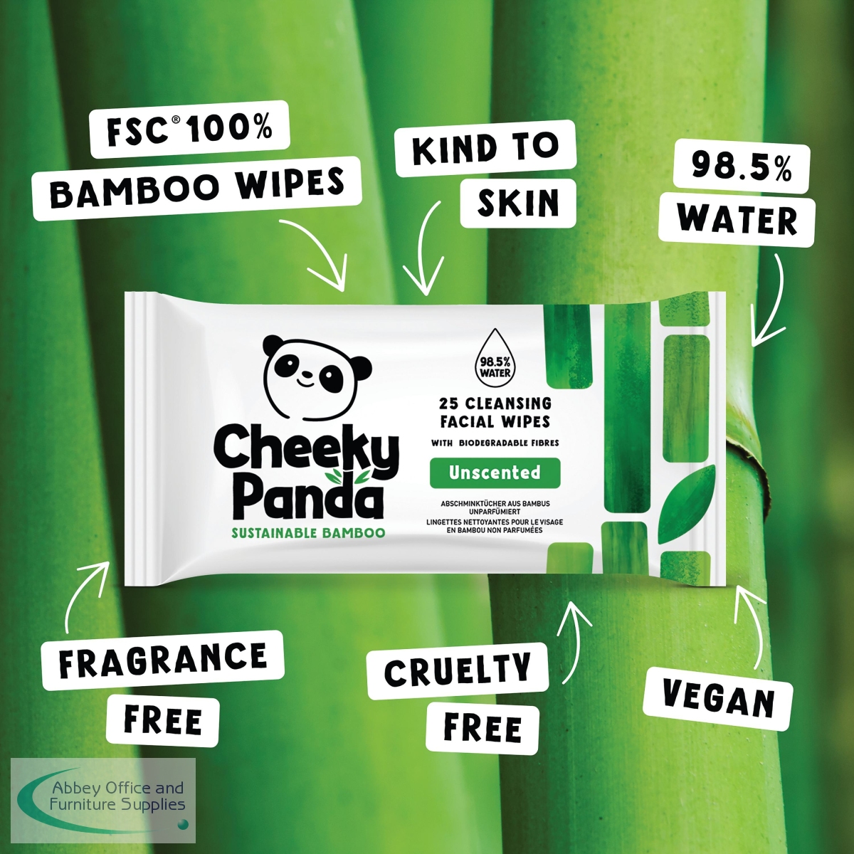 CHK63075 - Cheeky Panda Bamboo Facial Cleansing Wipes 25 Wipes Unscented (Pack of 6) FACEWUNSMUL6-GBR