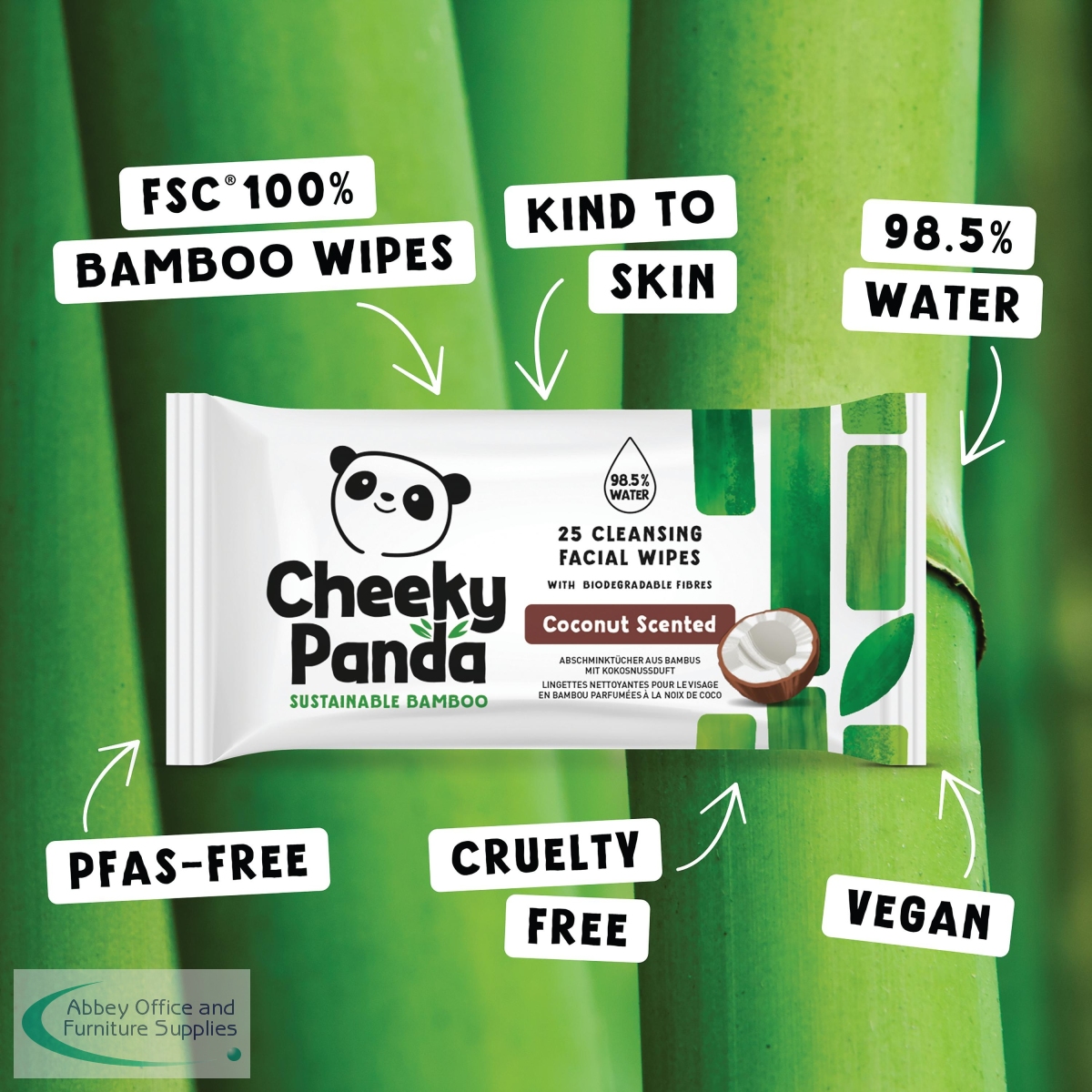 CHK63076 - Cheeky Panda Bamboo Facial Cleansing Wipes 25 Wipes Coconut (Pack of 6) FACEWCCNMUL6-GBR
