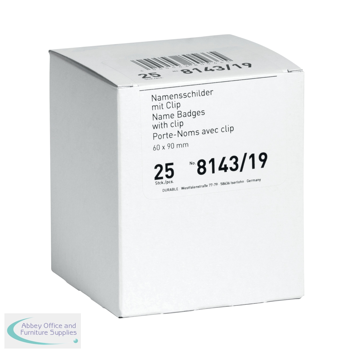DB814319 - Durable Visitor Badge with Plastic Clip 60x90mm Clear (Pack of 25) 8143/19