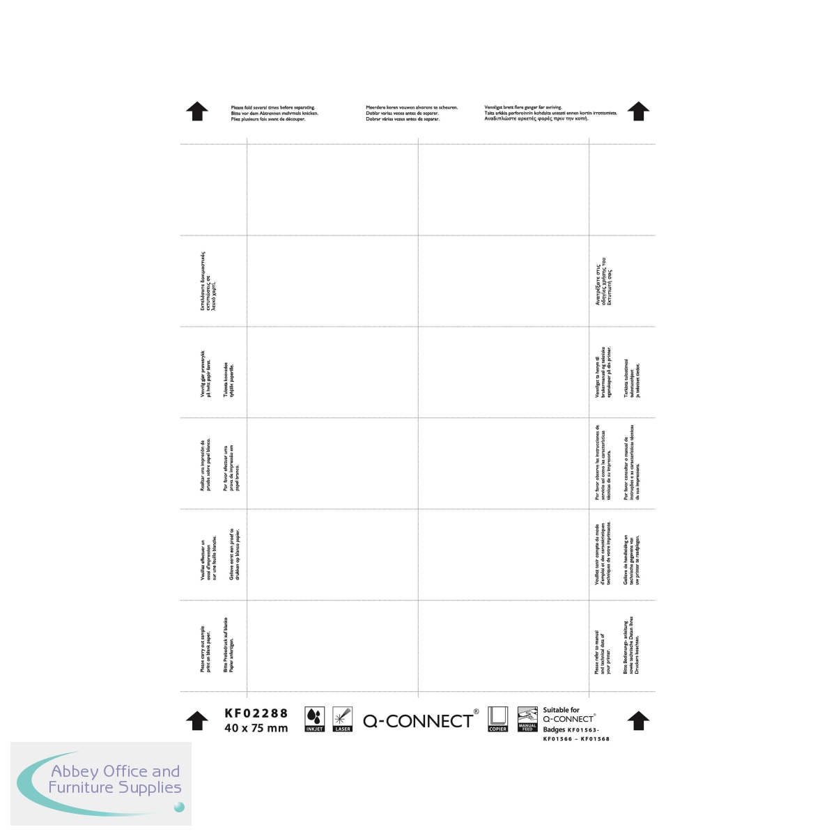 KF02288 - Q-Connect Name Badge Inserts 40x75mm 12 Inserts per Sheet (Pack of 25) KF02288