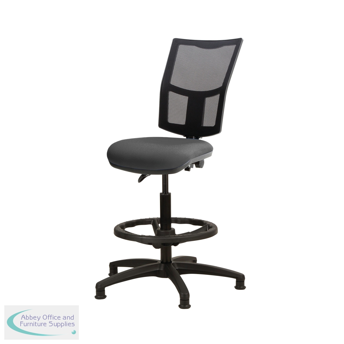 This High Mesh Back Draughtsman Chair has a metal adjustable foot ring, perfect for working at high desks and workbenches. The chair is upholstered in fabric and comes on a 25 inch black five star glide base.
