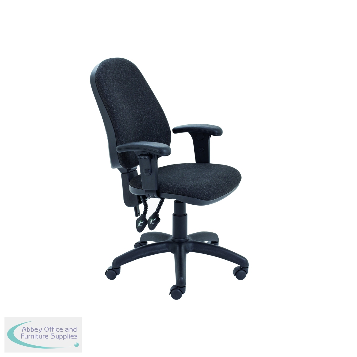 The High Back Operator Chair has a deep cushioned seat and back upholstered in a tough wearing fabric with height adjustable arms. The permanent contact back (PCB) ensures user comfort for up to 8 hours for users up to 23 stone. The backrest angle can be fixed or set to free float.