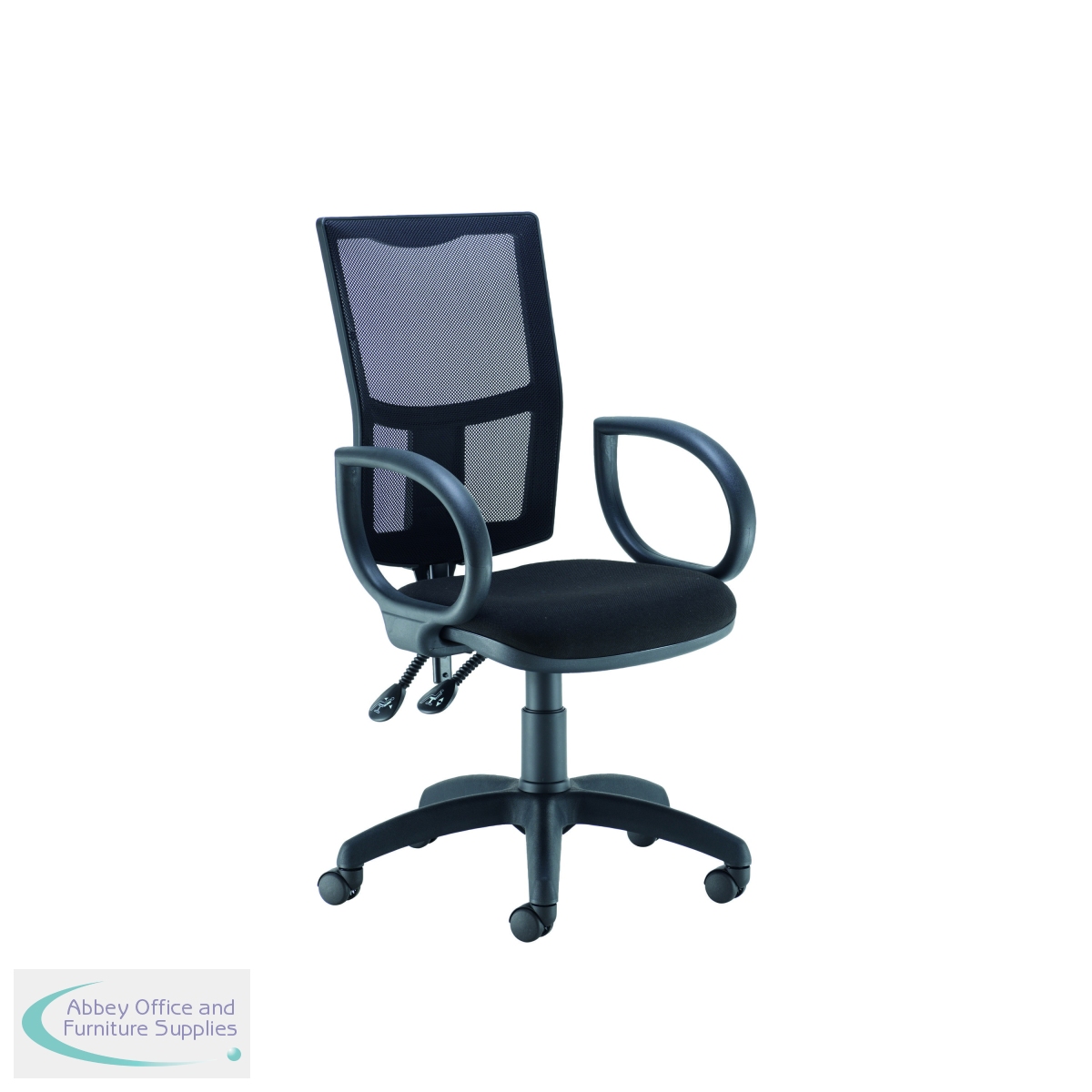 The Operator Chair has a mesh back and fabric seat with fixed loop arms. The permanent contact back (PCB) ensures user comfort for up to 8 hours for users up to 23 stone. The overall dimensions are 640x640x1010-1175mm,