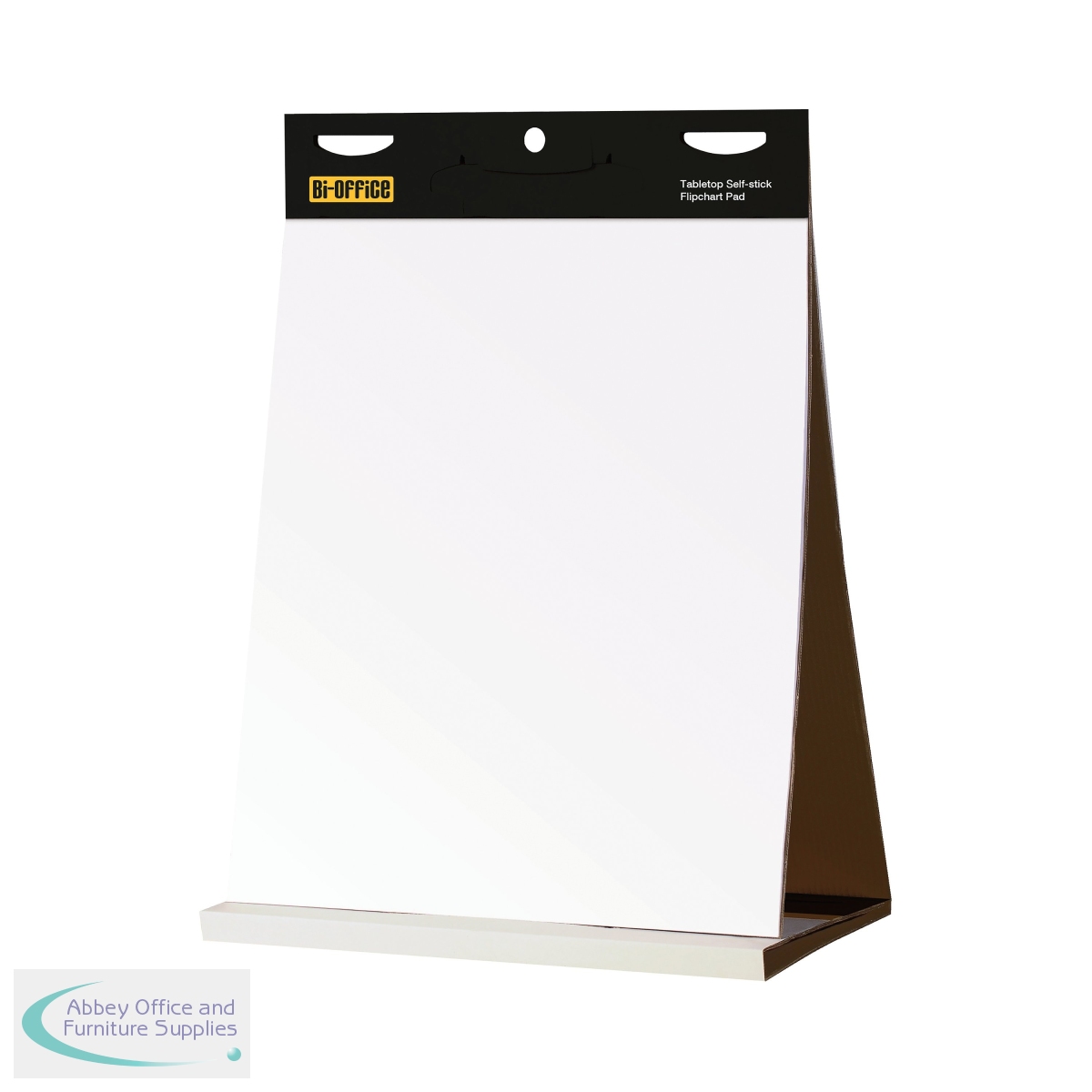 This Bi-Office Self-Stick Flipchart Pad offers a versatile and convenient way of writing notes for presentations and meetings. Simply peel off each page and affix it to a wall to write up meeting notes or brainstorming ideas, or hold the pad into a sturdy triangular shape to use as its own desktop easel, it even comes with a carrying handle. The solvent-free adhesive sticks firmly in place but can be easily removed without leaving any spots, marks or residue behind.