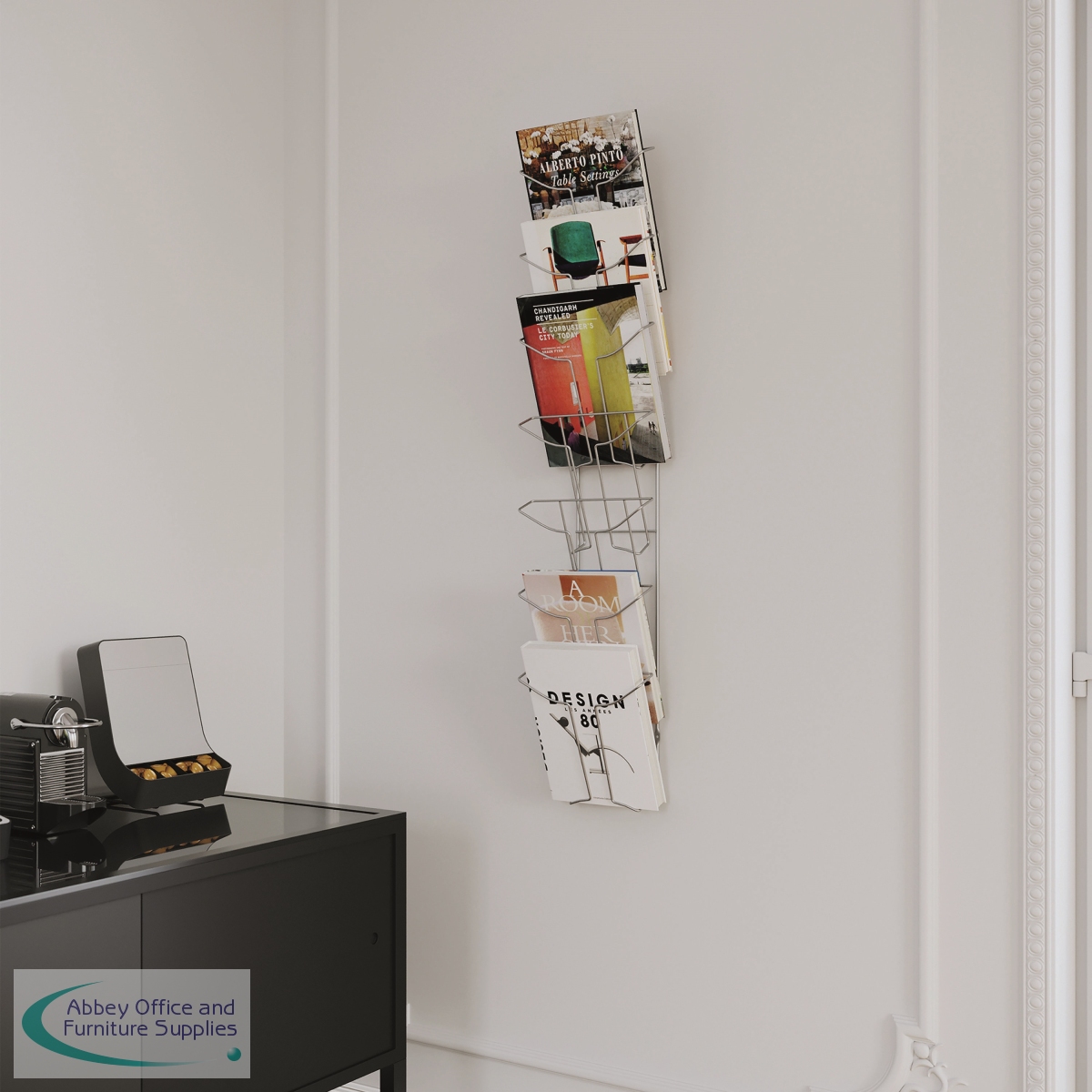 Perfect for use with magazines, corporate literature and brochures, the Alba Wall Mounted Standing Display is great for all businesses. You can encourage visitors to learn more about your business using the seven pockets for A4 literature and magazines. Manufactured from durable chrome-finish wire and with a contemporary design, this display is designed to last and suits any decor. It comes with a fixing kit for easy installation. Key Features