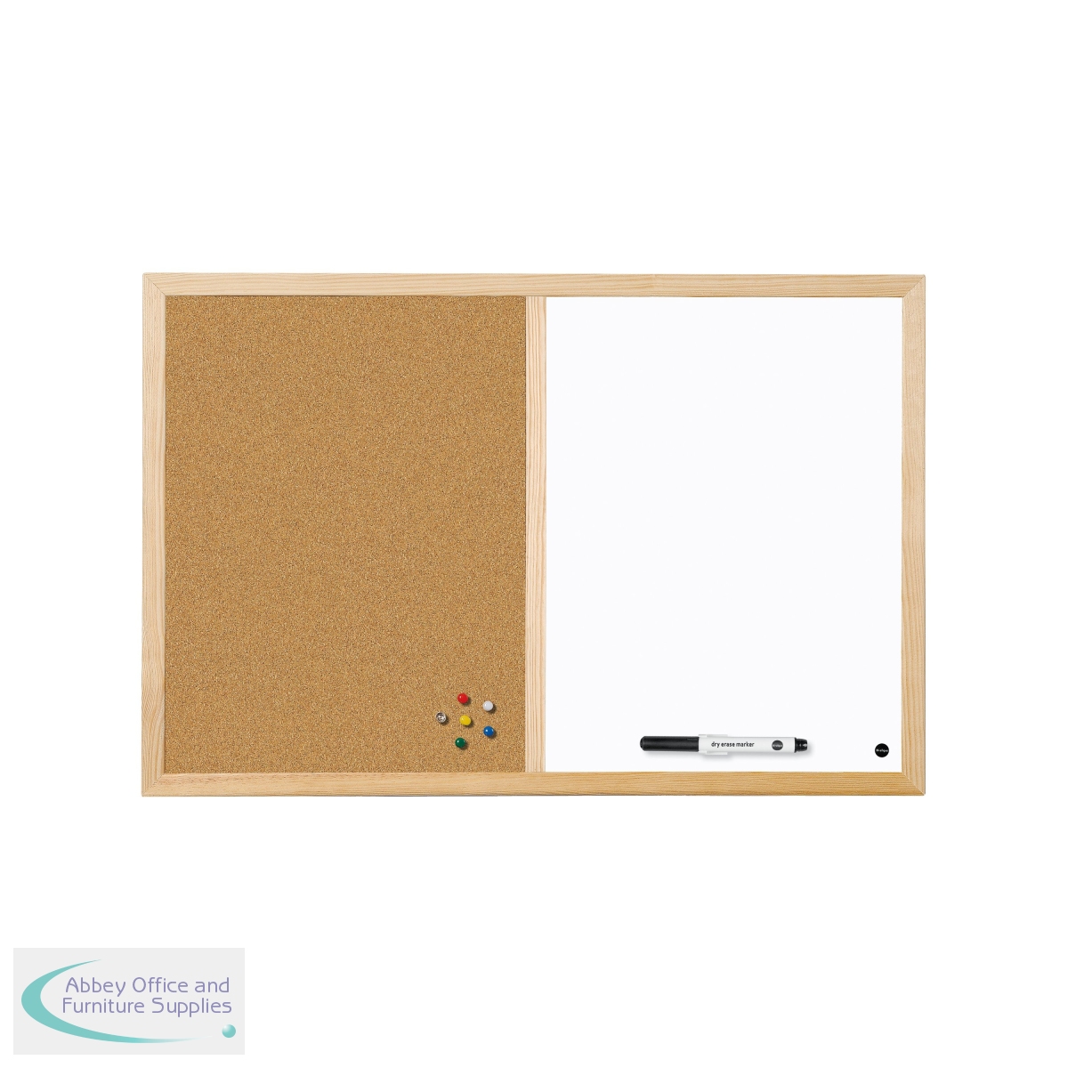 Ideal for limited office spaces as well as meeting areas and kitchen spaces, this Bi-Office Combination Board combines the benefits of a cork pin board and drywipe board in one. On one half of the board, you can pin up notices on the cork pin board, and on the other half, write a quick message on the non-magnetic dry wipe board. This board also includes a drywipe pen, a pack of pins and a wall fixing kit.