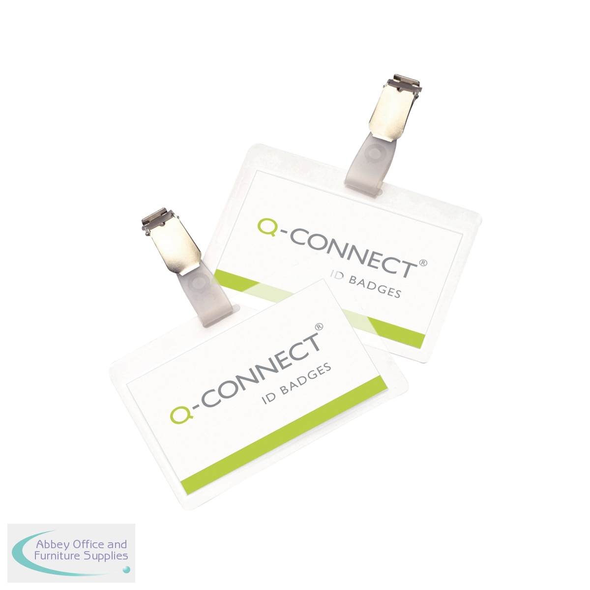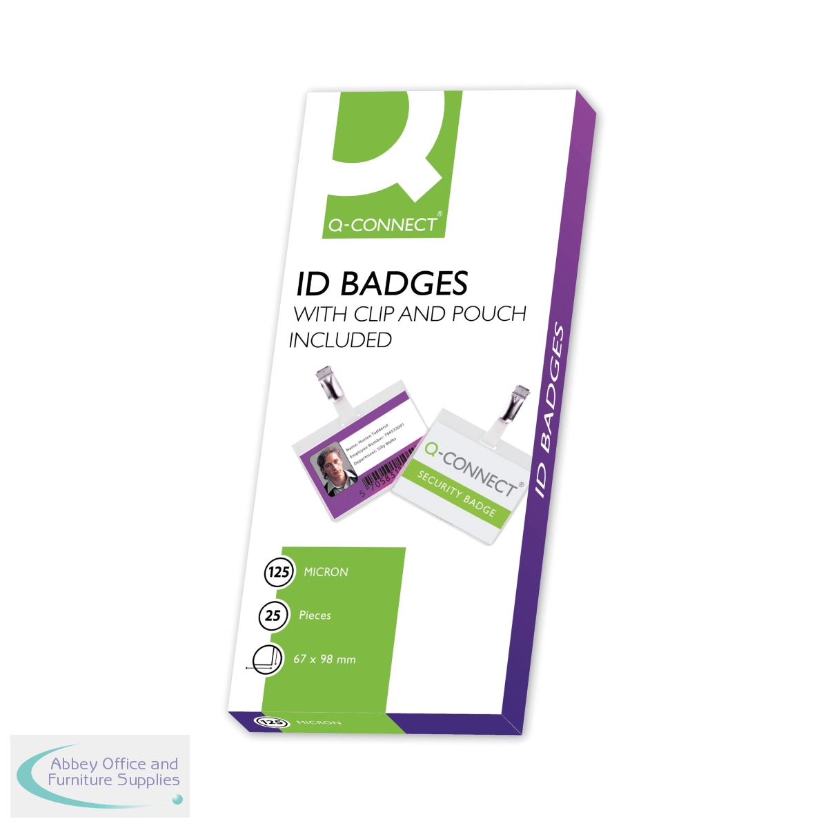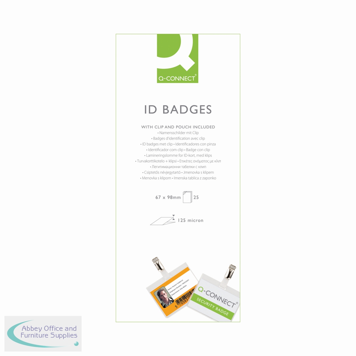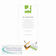 Protect the security of your site with these Q-Connect hot laminating badges, which fully encapsulate contents for long lasting use. These 125 micron badges can be heat sealed with a laminator and come with clips attached, ready to use. Each badge measures 67 x 98mm. This pack contains 25 badges.