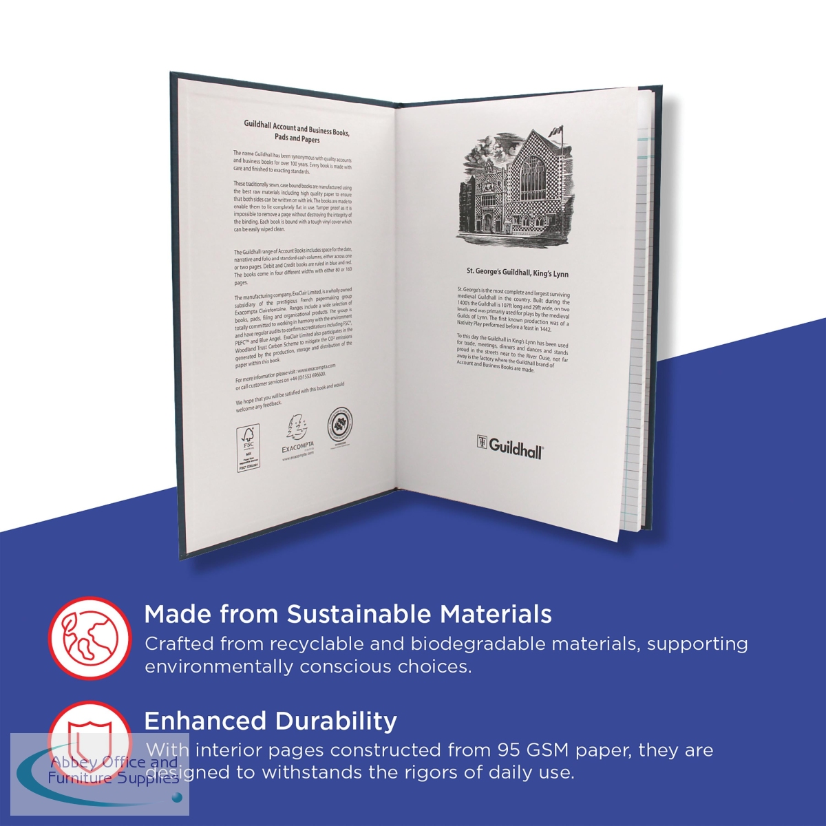 GH313 - Exacompta Guildhall Account Book 80 Pages 3 Cash Columns 31/3 1015