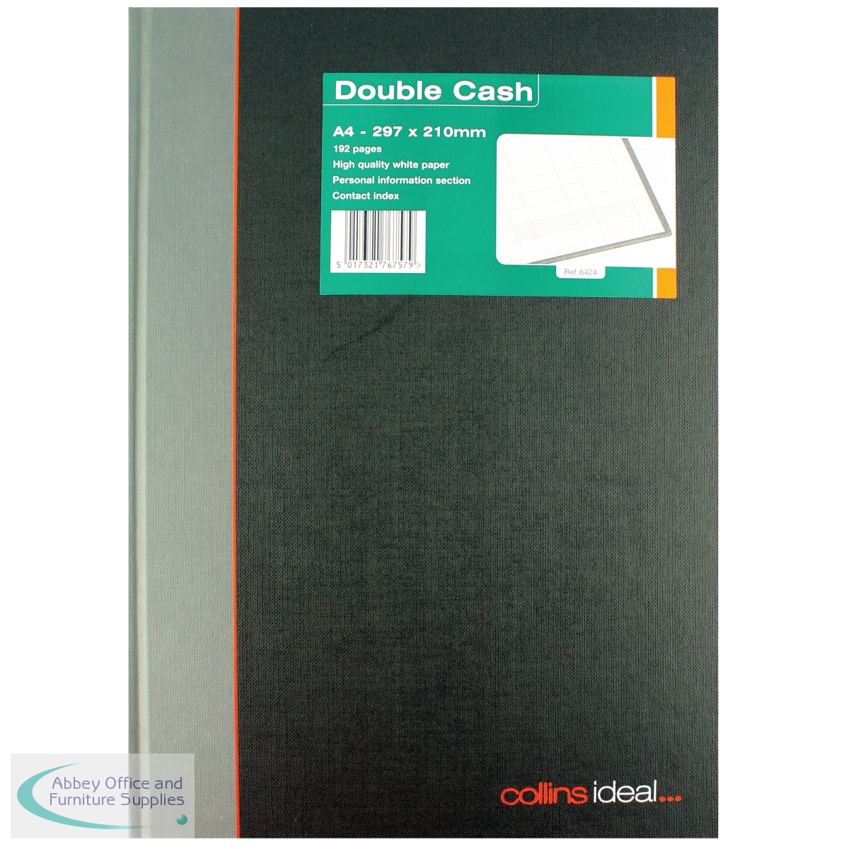 CL76757 - Ideal A4 Cashbook Casebound Double Cash 192 Pages Black 6424