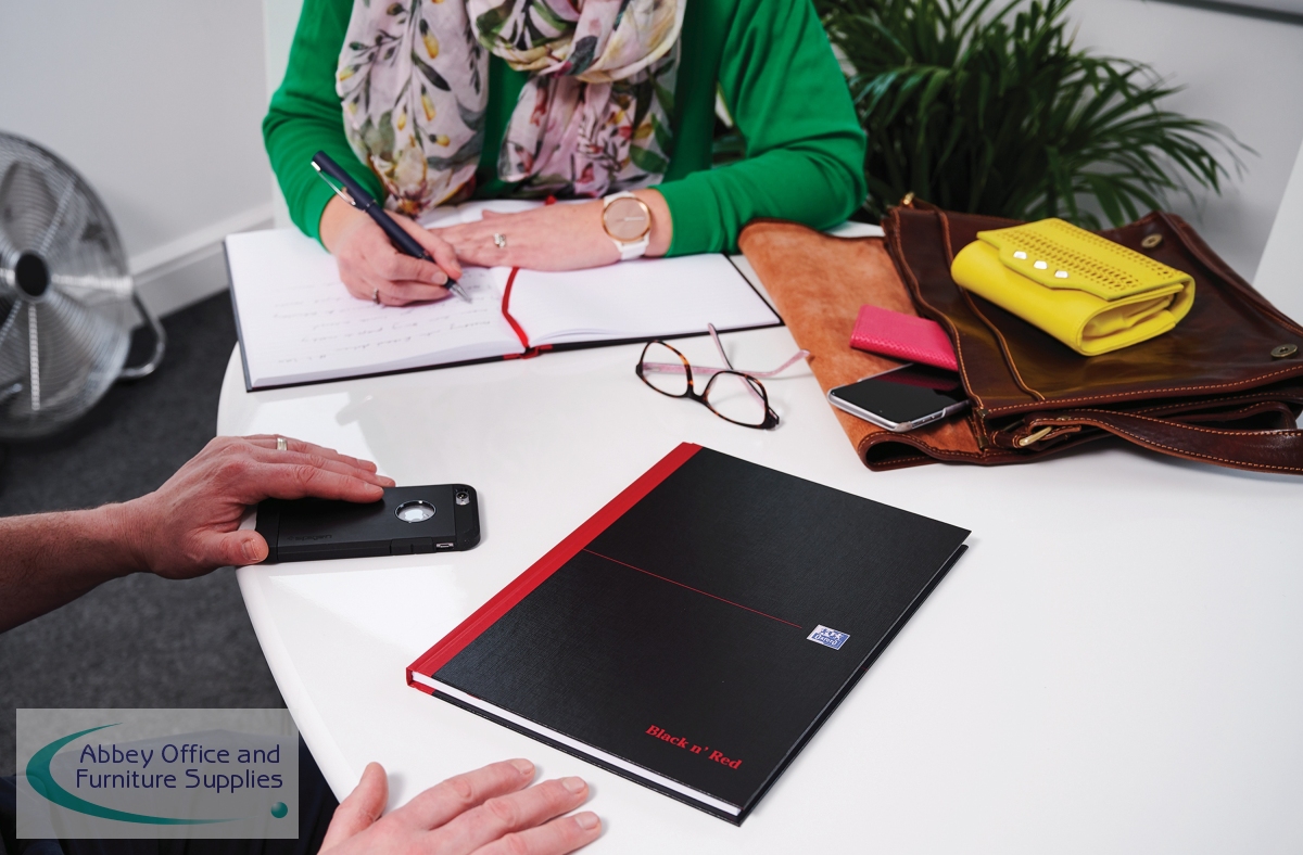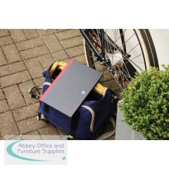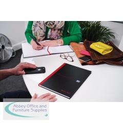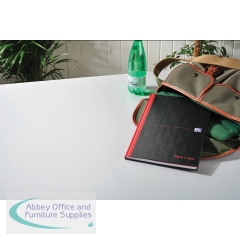 This stylish, professional Black n' Red notebook contains 96 pages of high quality Optik paper, which is designed for minimum ink bleed through and is smart ruled for neat notes. The casebound notebook features sturdy hardback covers and sewn pages for long lasting use. The A4 notebook also comes with a ribbon page marker for quick and easy referencing. This pack contains 1 A4 notebook.
