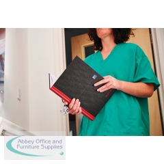 This stylish, professional Black n' Red A4 notebook contains 192 pages of high quality Optik paper, which is designed for minimum ink bleed through and is ruled for neat notes. The pages are also indexed A-Z for quick and easy referencing. The casebound notebook features sturdy hardback covers and sewn pages for long lasting use. This pack contains 5 A4 notebooks.