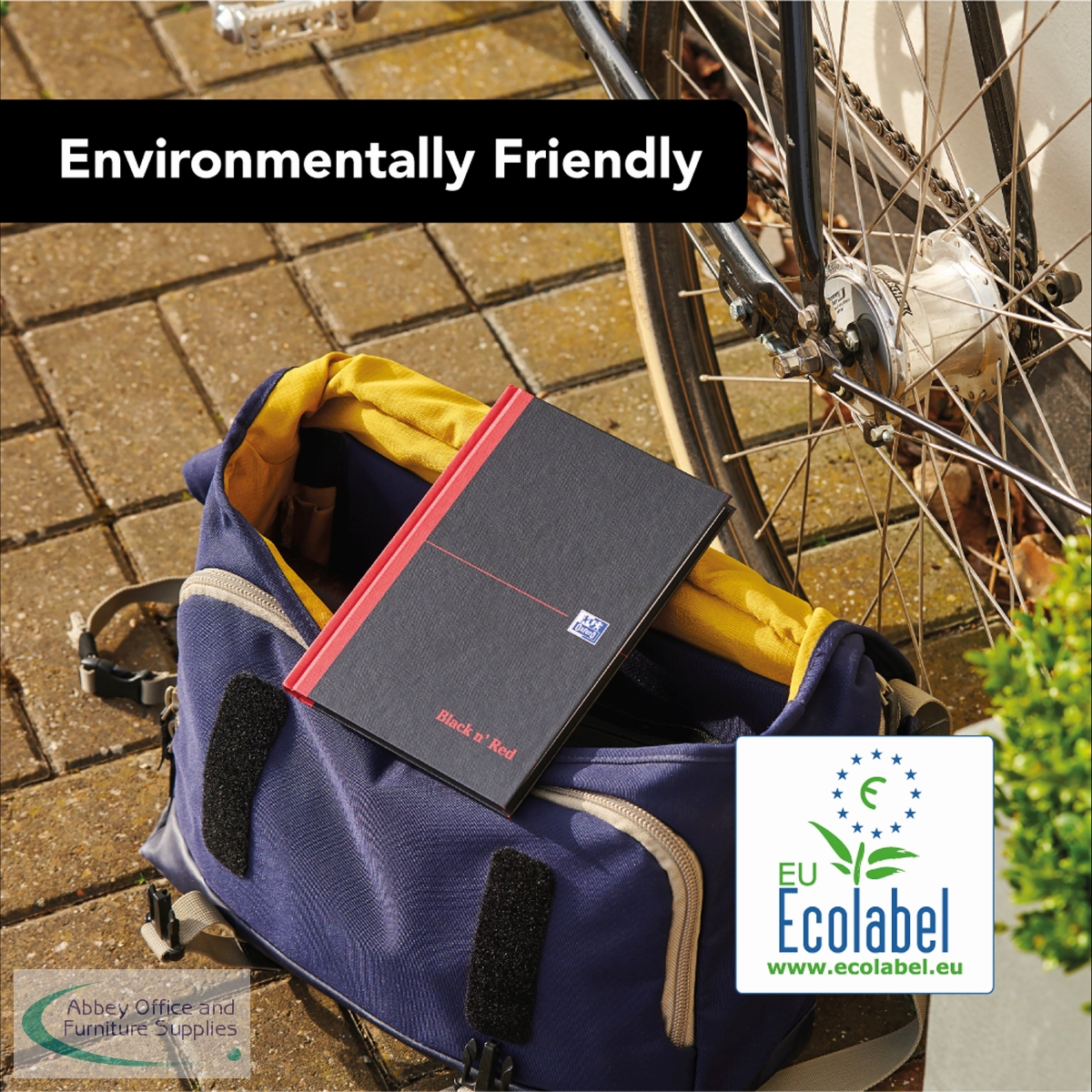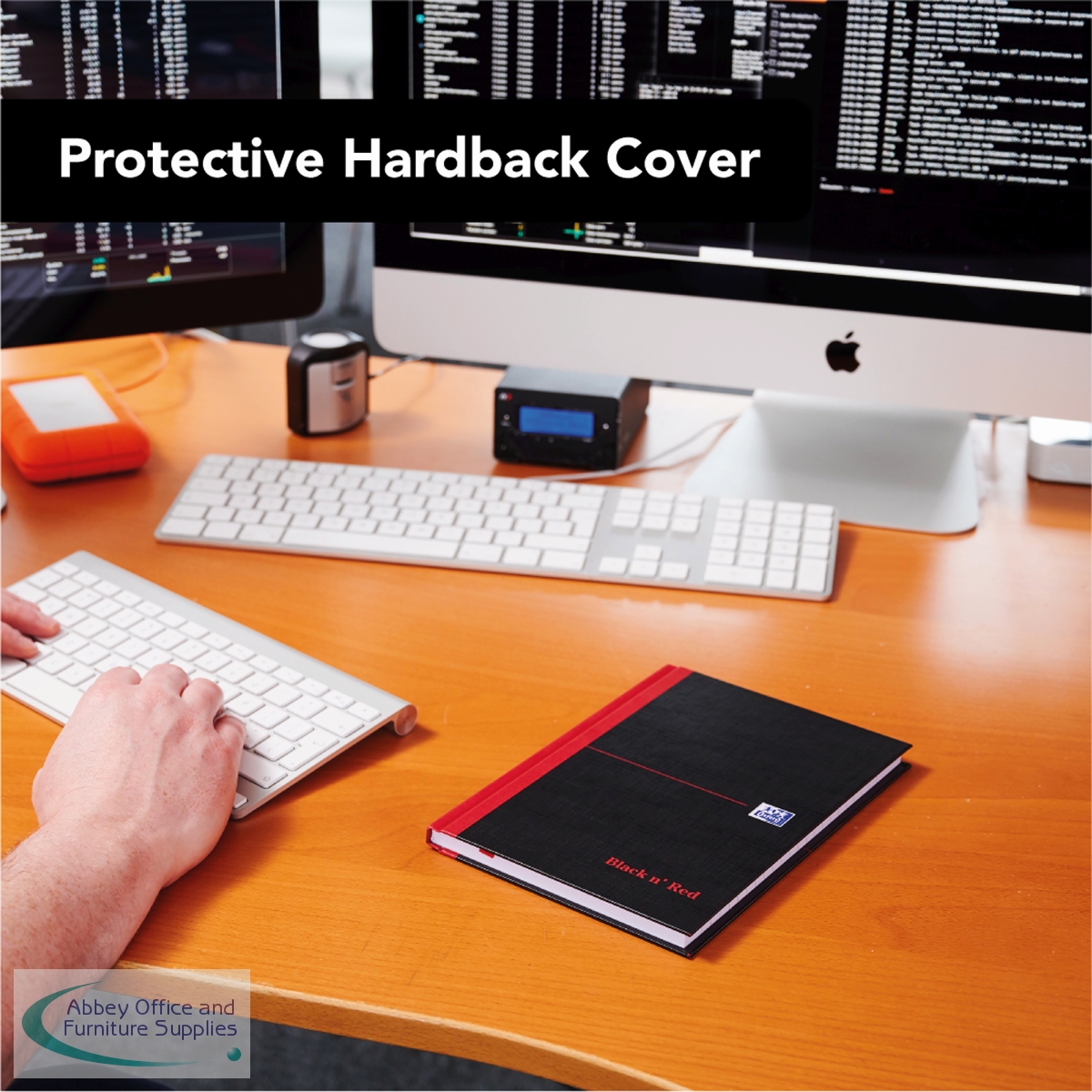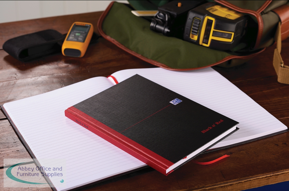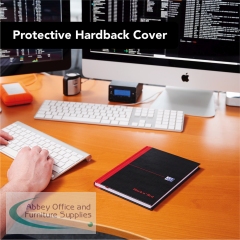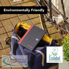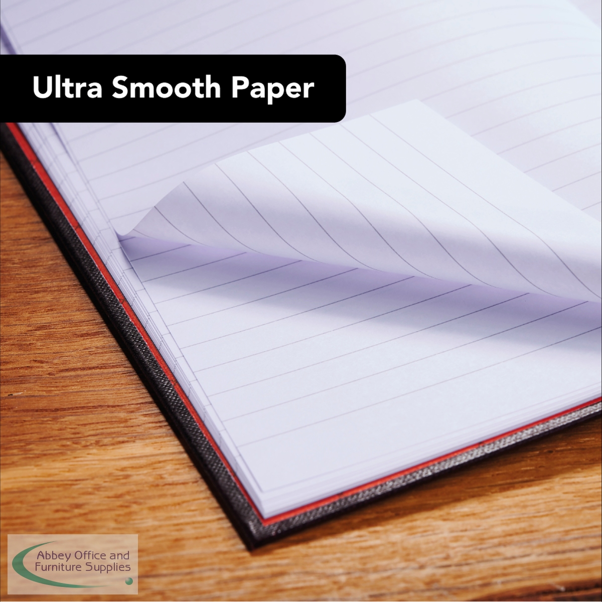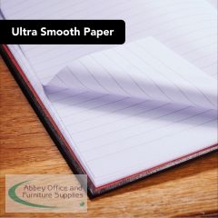 This stylish, professional Black n' Red A5 notebook contains 192 pages of high quality 90gsm Optik paper, which is designed for minimum ink bleed through and is ruled for neat notes. The casebound notebook features sturdy hardback covers and sewn pages for long lasting use. The A5 notebook also comes with a ribbon page marker for quick and easy referencing. This pack contains 5 A5 notebooks.