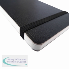 This stylish compact notebook contains 160 pages of high-quality lined paper that is perfect for note-taking on the move. The top bound notebook has sewn pages for strength and stiff black covers with an elasticated band closure for security. This pack contains 12 notebooks measuring 82x127mm.