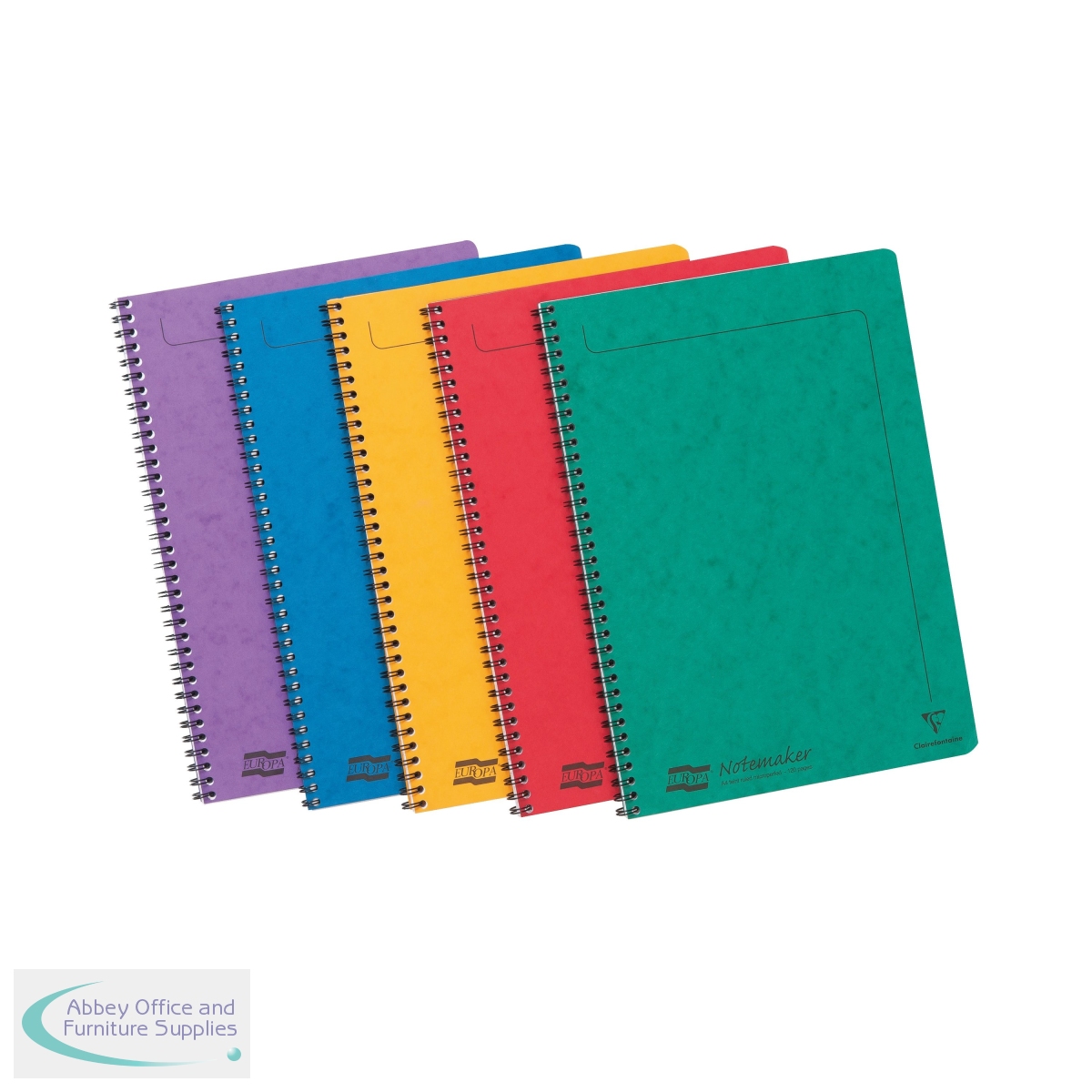 These stylish and colourful Europa Notemaker notebooks contain 120 pages of quality 90gsm paper, which is feint ruled for neat note-taking. The notebooks also feature hardwearing pressboard covers and a wire binding, which allows the notebooks to lie flat for easy use. This assorted pack contains 10 A4 notebooks with red, yellow, blue, green and purple covers, which is ideal for colour coding your notes.