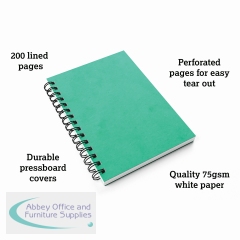 This premium notebook from Silvine contains 200 pages of quality 75gsm paper, with a twin wire binding that allows the notebook to lie flat. The pages are ruled feint for neatness and micro-perforated for easy removal. The notebook comes with stiff pressboard covers for durability. This pack contains 6 x A5 notebooks.