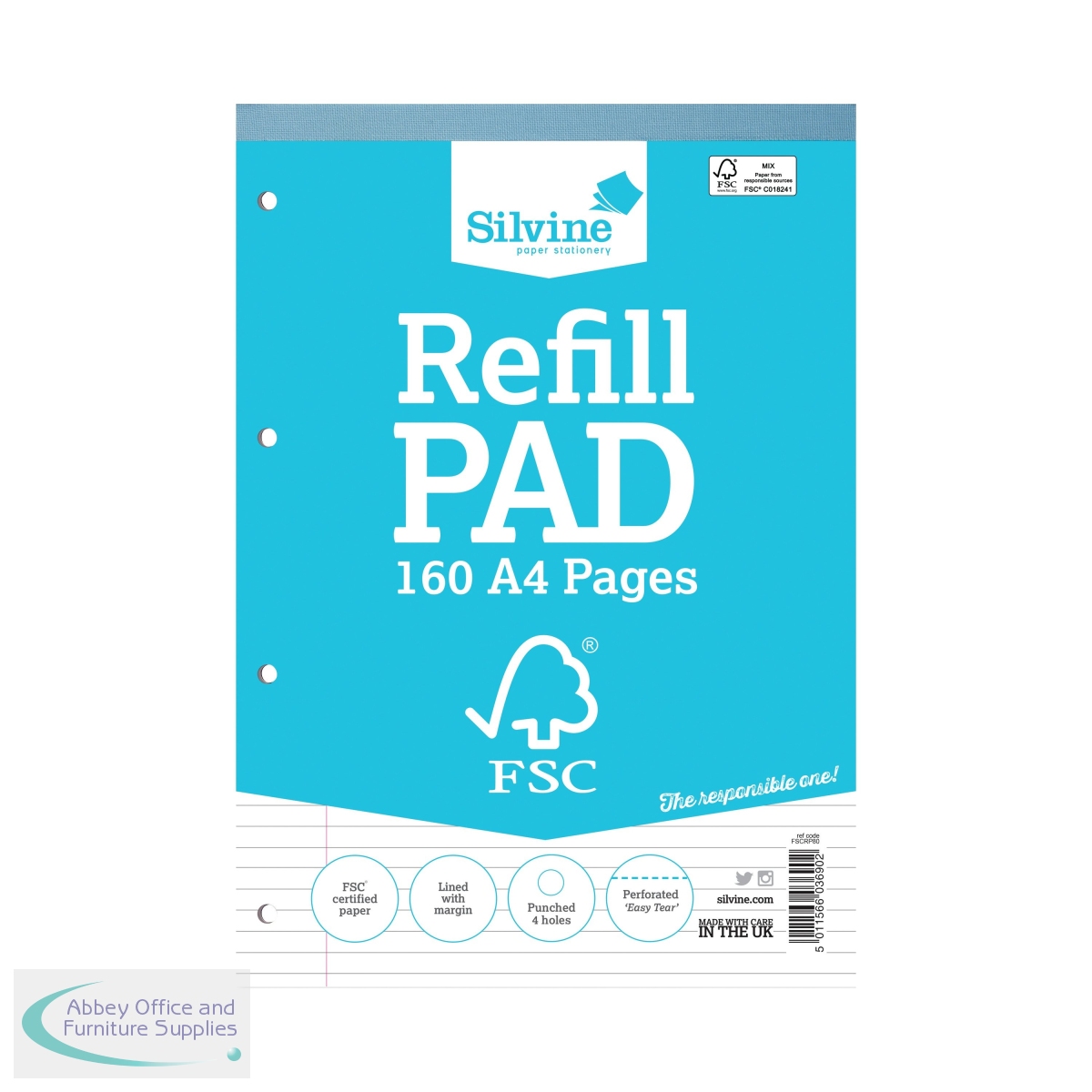 [ Silvine; Books, Pads & Albums; Refill Pads; Ruled; OEM Code FSCRP80; EAN 05011566436900; VOW Code SV43690 ]