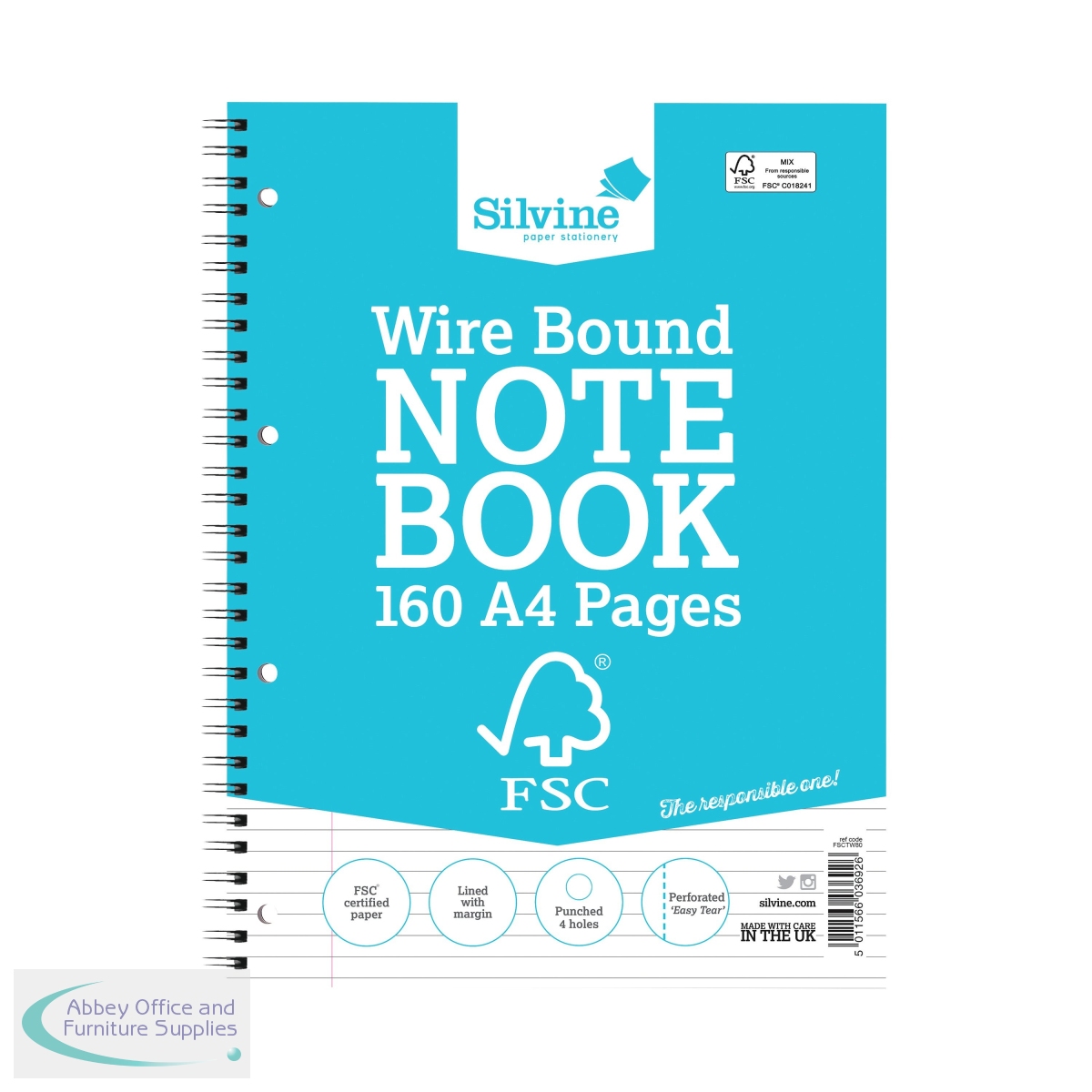 SV43692 - Silvine Envrionmentally Friendly Wirebound Notebook 160 Pages A4 (5 Pack) FSCTW80