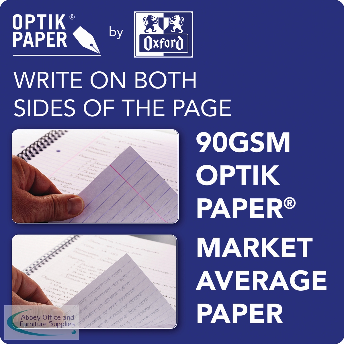 This Oxford My Notes Refill Pad contains 200 pages of 90gsm Optik paper, which is ruled with a margin for neat note-taking. The pages are four-hole punched for filing in ring binders or lever arch files. The refill pad is sidebound with a sturdy backboard for support. This pack contains five A4 refill pads.