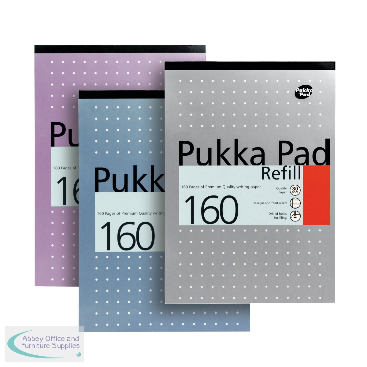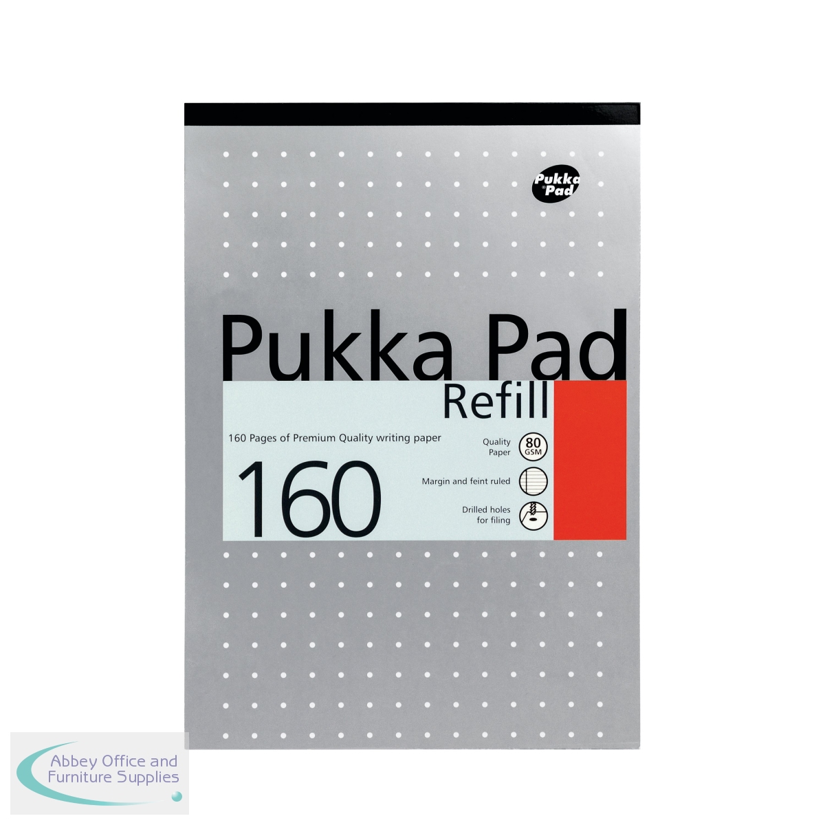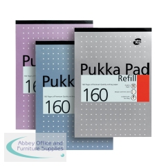 This handy Pukka refill pad contains 160 pages of quality 80gsm paper, which is feint ruled with a margin for neat note-taking. The pad is headbound with a sturdy backboard and four-hole punched for filing pages in a ring binder or lever arch file. This pack contains 6 x A4 refill pads.