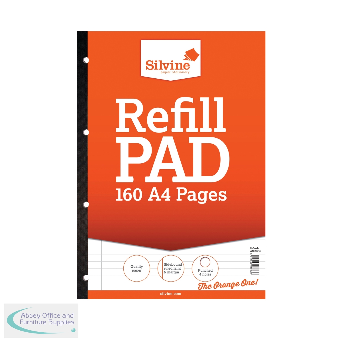This Silvine Refill Pad contains 160 pages of quality paper. The pad is sidebound with four-hole punching for easily filing into standard lever arch files and ring binders. The pages are feint ruled with a margin for neat note-taking. This pack contains 6 x A4 refill pads.