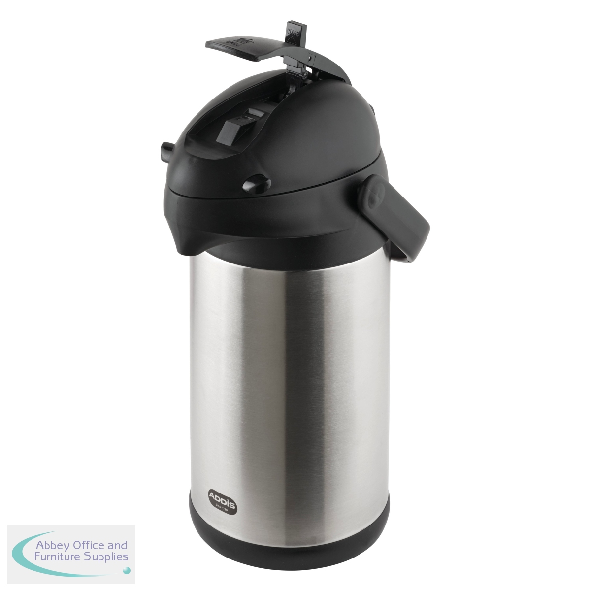 The Addis President Pump Vacuum Jug provides an easy and stylish way to dispense hot or cold drinks at a hospitality event. Simply press down on the plastic top to allow the contents to flow out through the easy-clean nozzle. With a double-walled vacuum construction, it keeps hot or cold beverages at a constant temperature for up to six hours. The strong stainless steel construction is virtually unbreakable. Plus, there's a plastic swing handle for easy carrying.
