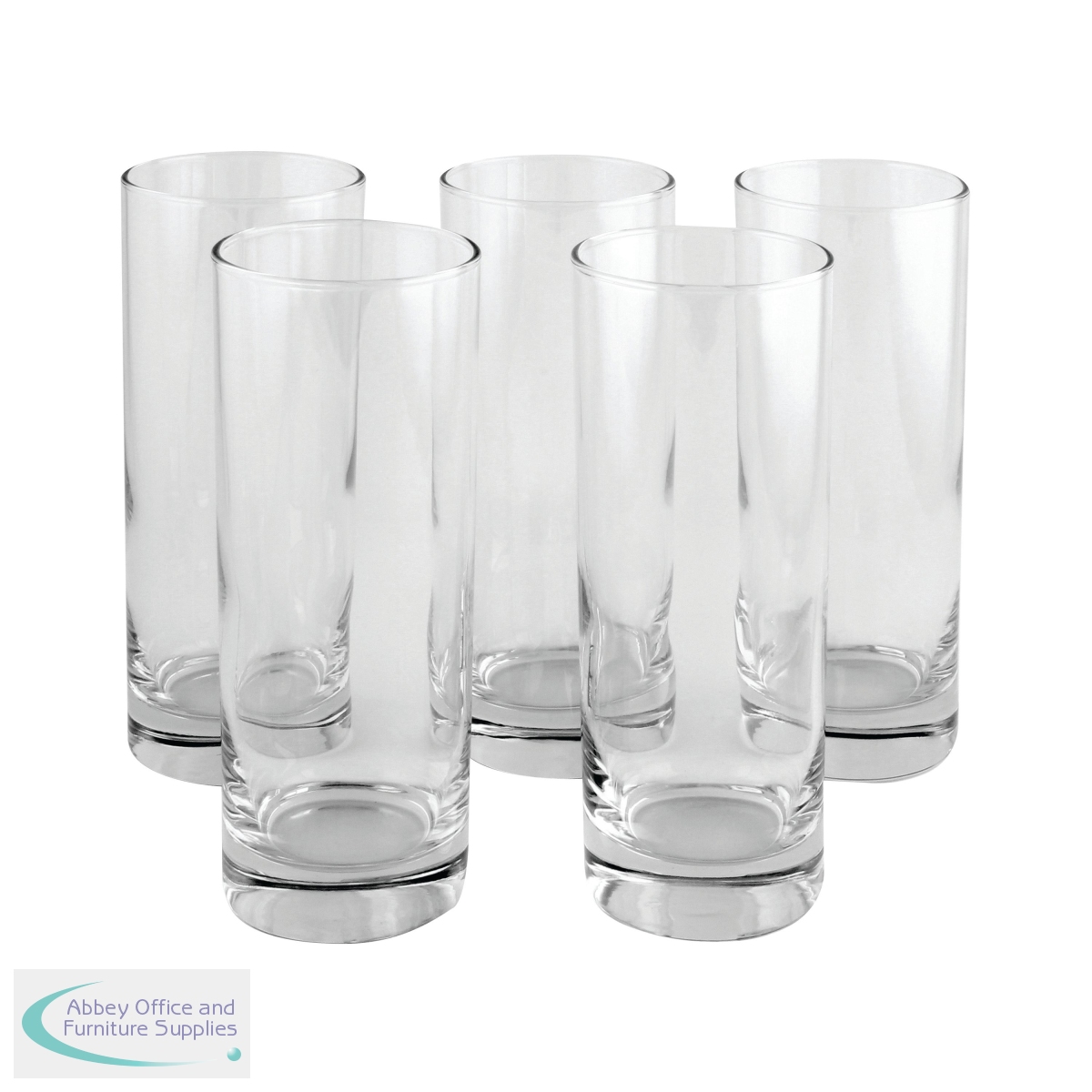 Ideal for entertaining at functions, parties and exhibitions or for simple, every day use, these stylish and elegant 36.5cl drinking glasses are a fantastic addition to the home or the office. The contemporary, modest design is suitable for any environment and fits in with all types of dcor. The affordable, clear glass is dishwasher safe, allowing you to keep the glasses spotless at all times with the minimum of effort. This pack contains 6 glasses.