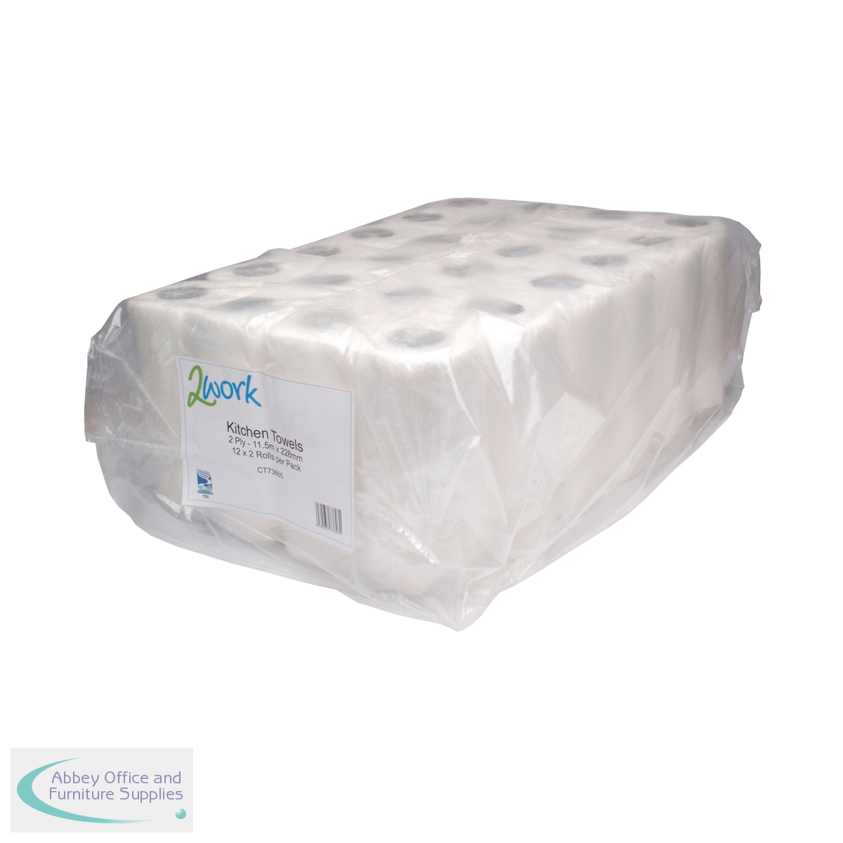 CT73665 - 2Work Kitchen Roll White 12x2 (Pack of 24) CT73665