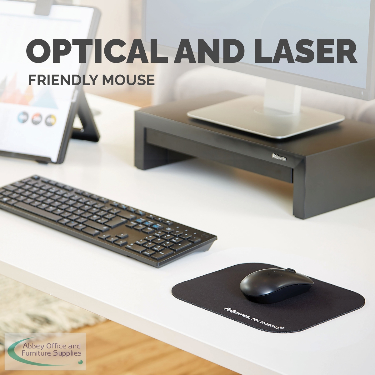 This Fellowes Microban Mouse Mat provides superior tracking for both ball and optical computer mice, making it ideal for use at home or in the office. This mat features built-in Microban antimicrobial protection that inhibits the uncontrolled growth of damaging microbes, such as bacteria, that can cause product deterioration. This black mouse mat also features a non-slip backing.