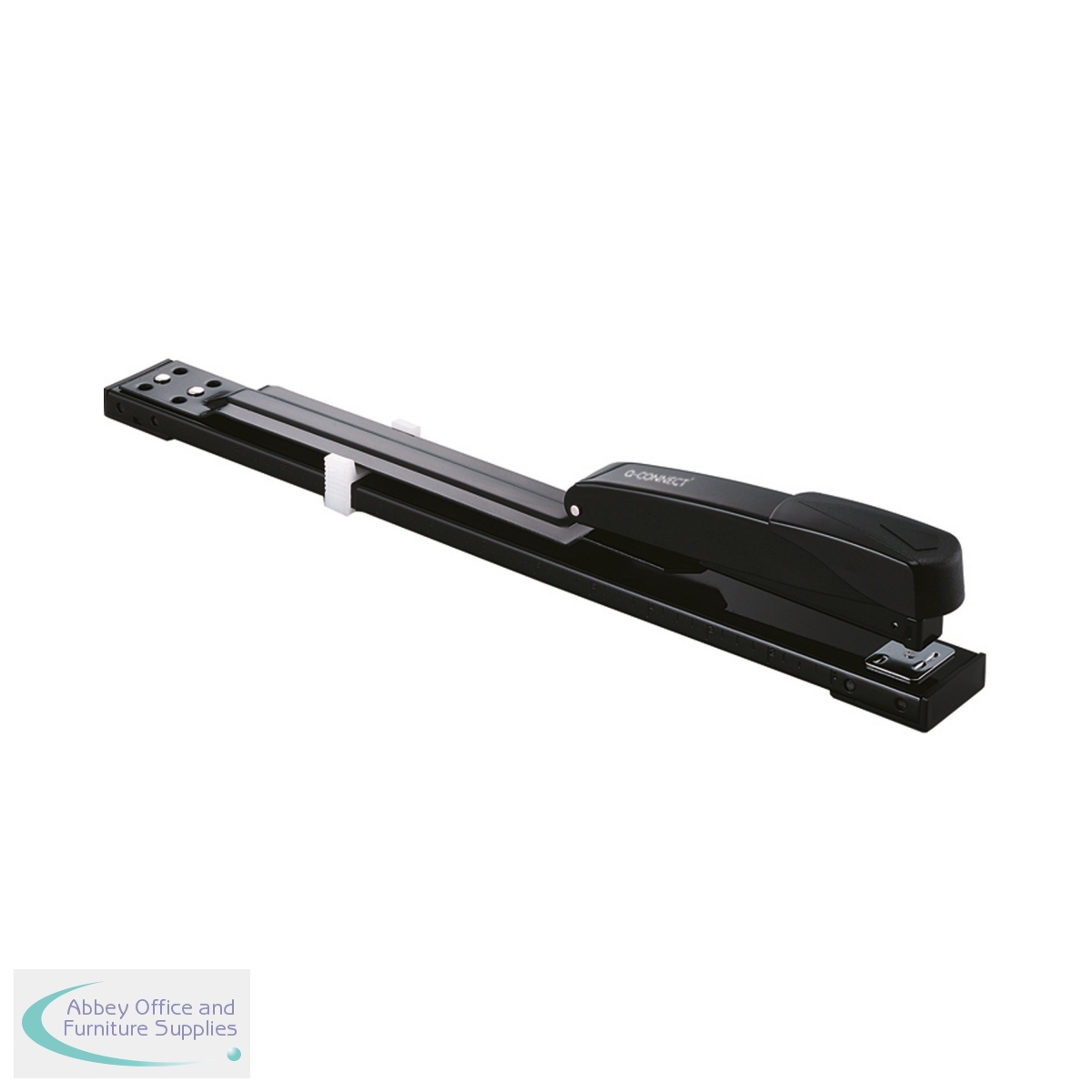 This Q-Connect Long Arm Stapler is ideal for stapling larger sheets and centres of pages. It features a tough metal upper arm, calibrated adjustable paper guide and 300mm stapling throat depth, with a stapling capacity of up to 20 sheets of80gsm paper. The stapler also features a top loading mechanism and soft rubber top cap.