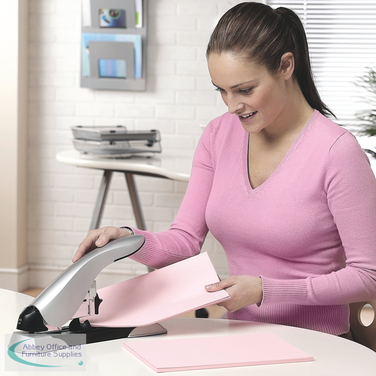The Rexel Gladiator is a heavy duty stapler with a stapling capacity of up to 160 sheets of 80gsm paper. This stapler uses Rexel No. 23 staples (8-17mm), which are loaded into the base for easy and efficient use. It features a paper guide that helps you position your documents accurately. The stapler also features a 10-70mm adjustable throat depth and jam release mechanism.