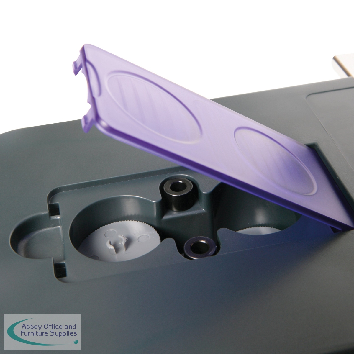 The Rapesco ECO P2200 is a heavy duty 2 hole power punch that can punch up to 150 sheets of 80gsm paper with an ergonomic extended handle. All metal working parts provide long lasting durability and the punch features an adjustable paper guide for precision. The design features replaceable punching boards and cutters for extended economy - when they wear out, simply replace and continue punching.