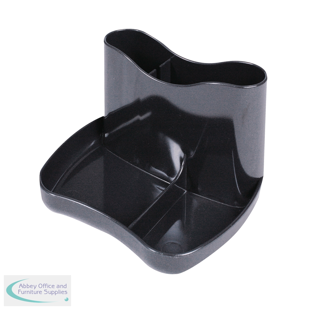 This Q-Connect Executive Desk Tidy features 4 compartments for pens, pencils, scissors, sticky notes, paperclips, pins, staples, erasers and more. Ideal for desktop storage and organisation, this black desk tidy measures W150 x D120 x H93mm.