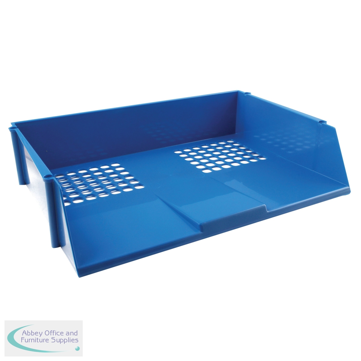 Ideal for desktop filing and organisation, this Q-Connect letter tray features a wide entry for easy access to contents. Made from durable, high impact polystyrene, the letter tray is stackable both with and without risers (available separately). This pack contains 1 blue letter tray measuring W415 x D285 x H88mm.