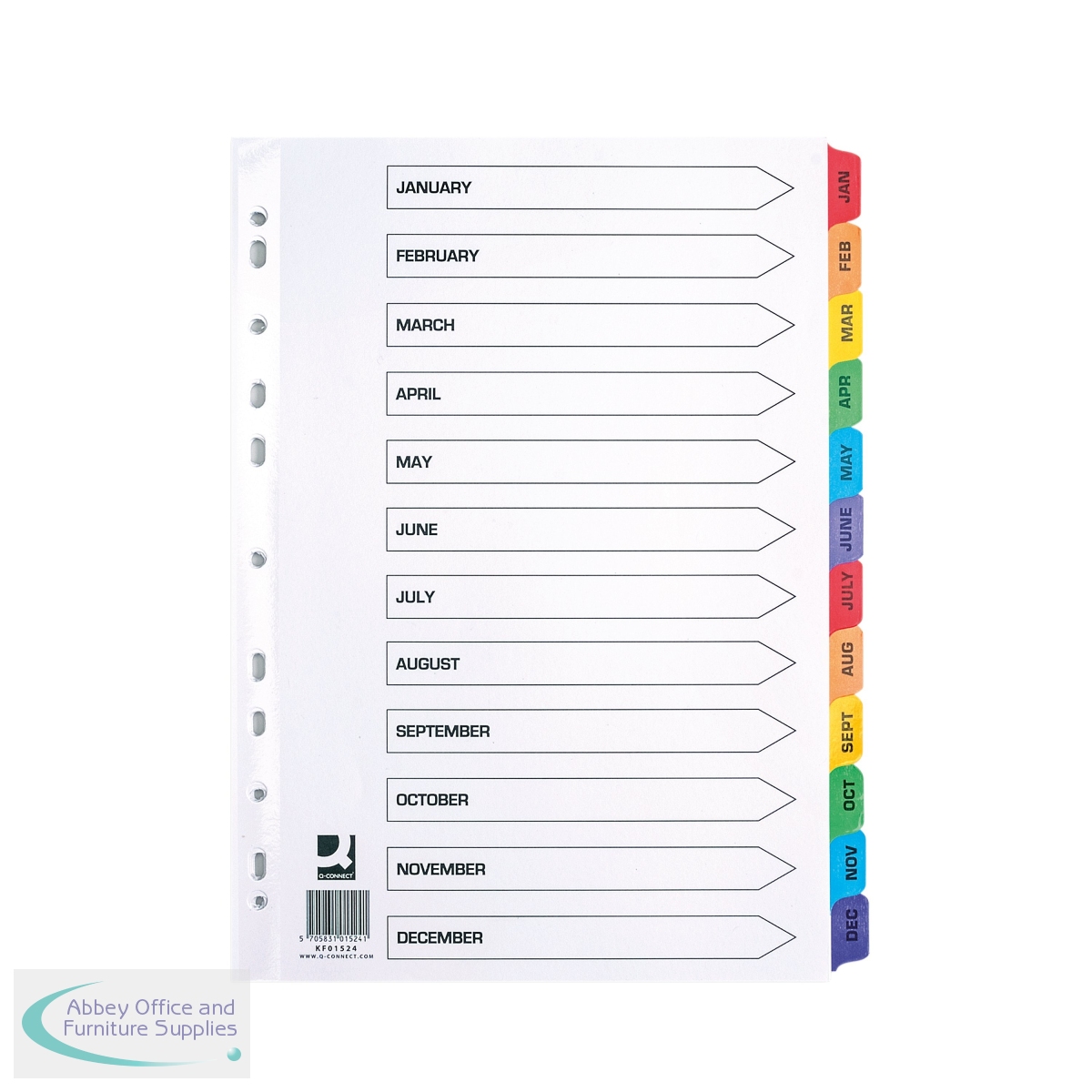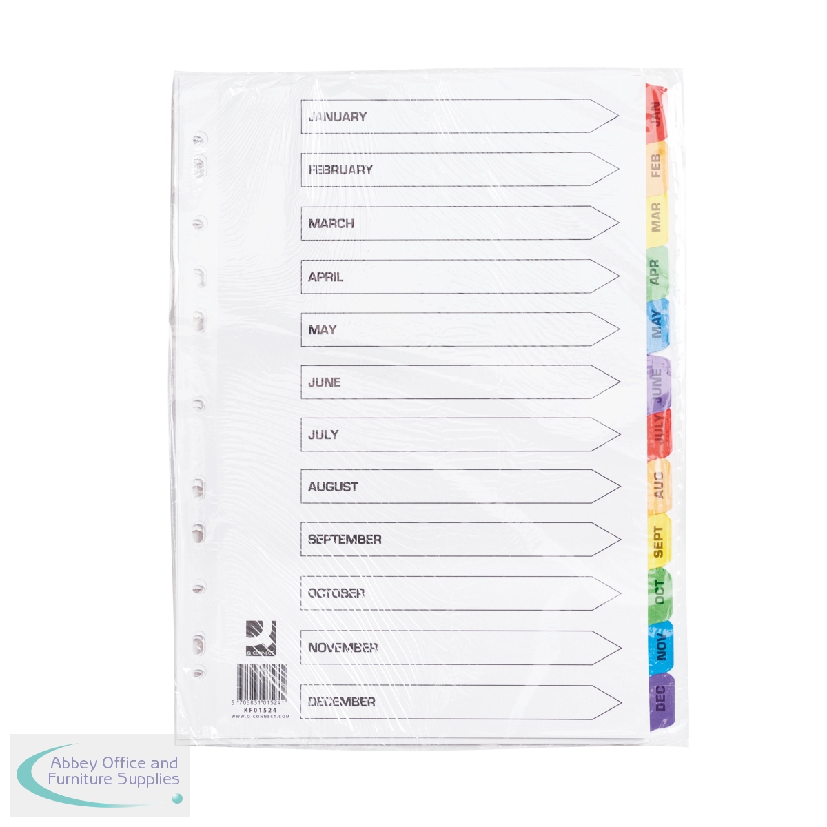 KF01524 - Q-Connect Multi-Punched January-December Reinforced Multi-Colour A4 Index Pre-Printed Tabs KF01524
