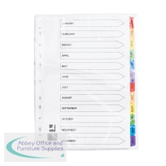 This Q-Connect January-December index divider provides a clear and simple filing solution for your everyday office needs. The front index sheet provides space for labelling to make referencing your notes quick and easy. Made from plain white card with multi-coloured Mylar tabs for extra reinforcement. This 12 part index comes with pre-printed tabs (January-December) and is multi-punched to fit standard lever arch files or ring binders.